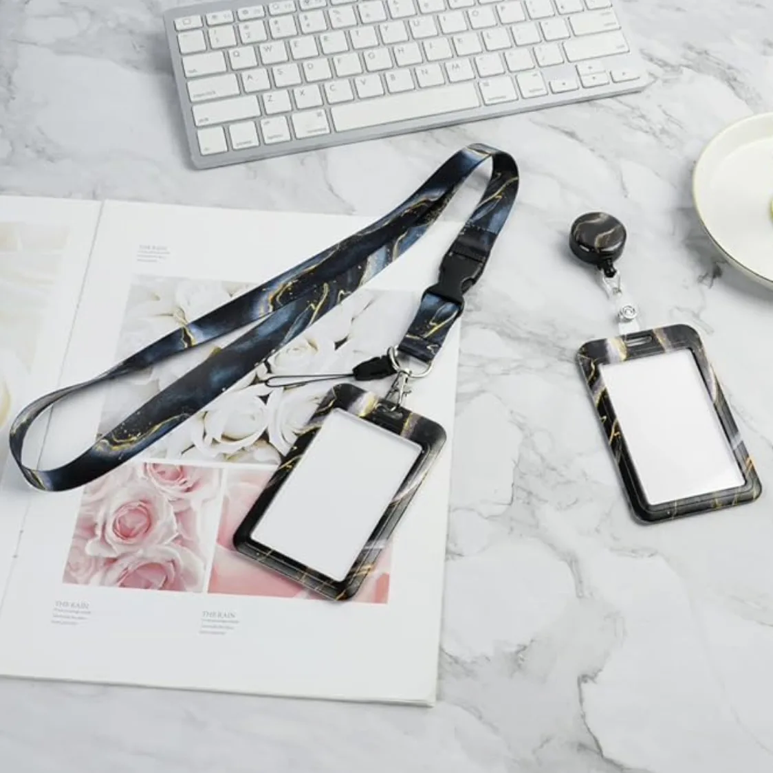 Houd al je pasjes en sleutels georganiseerd en binnen handbereik met deze stijlvolle 4-in-1 pashouder set met marmerprint. Deze complete set bevat alles wat je nodig hebt voor dagelijks gebruik op werk, in ziekenhuizen, tijdens beurzen en congressen, of op school. Ideaal voor toegangspassen, ID-passen, bankpassen, liftpassen en meer.