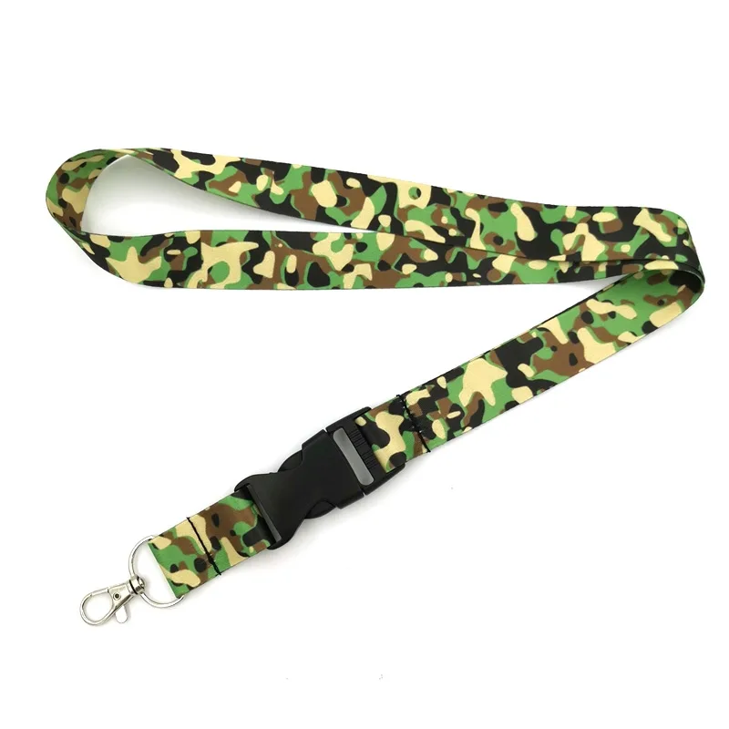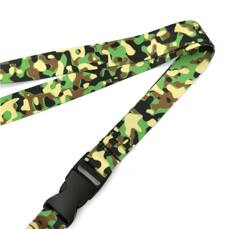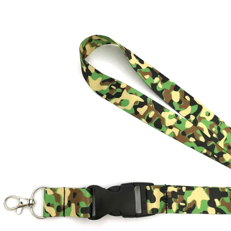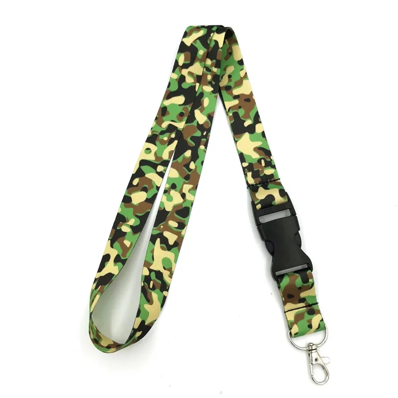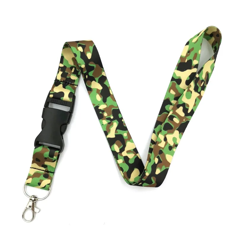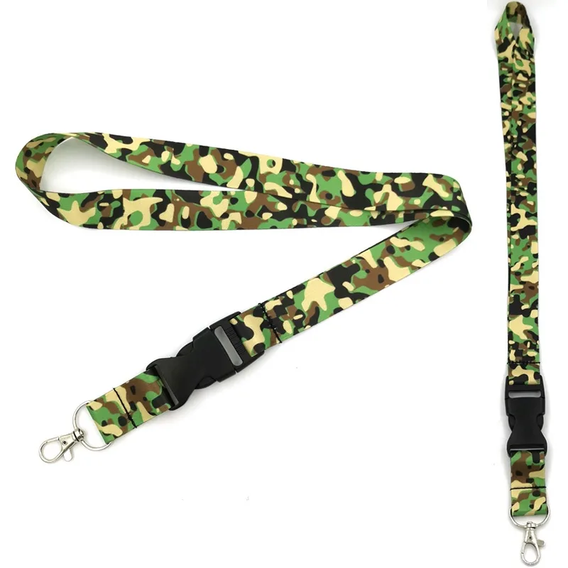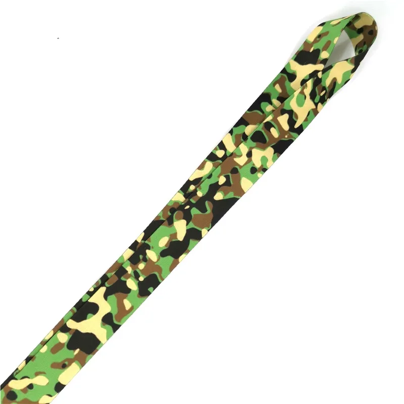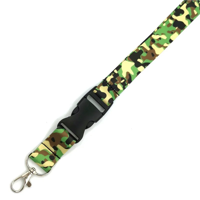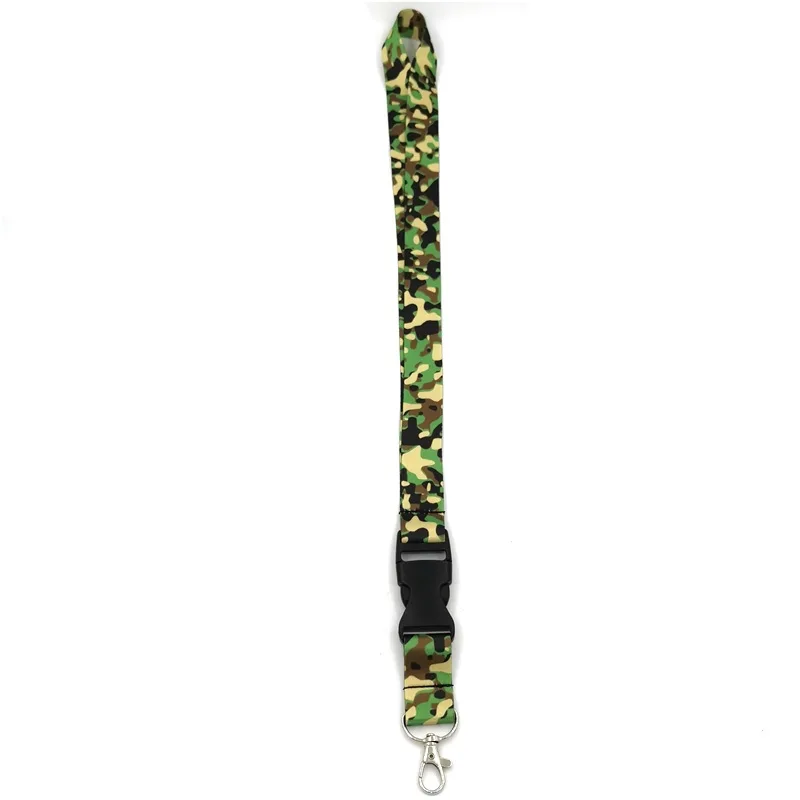 Dit stevige keycord met een stoere camouflageprint is voorzien van een metalen haaksluiting en een telefooncord.