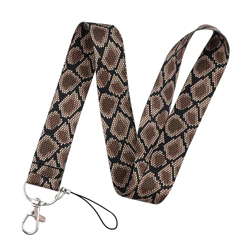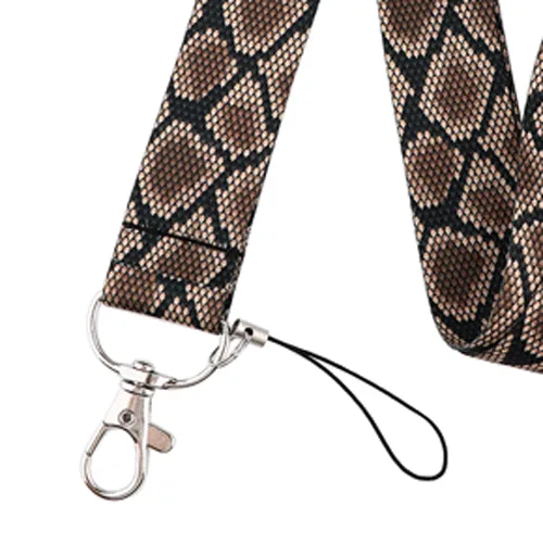 Dit stevige keycord met een mooie slangenprint is voorzien van een metalen haaksluiting en een telefooncord.