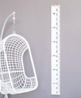 De groeimeter is gemaakt van canvas en gecomprimeerd tussen twee grenen latten, waardoor hij zowel stevig als stijlvol is. De bovenste lat is voorzien van een ophangkoord, zodat je hem gemakkelijk aan de muur kunt hangen. Dankzij het beschrijfbare oppervlak kun je belangrijke momenten vastleggen en altijd terugkijken naar hoe snel je kleintje groeit.