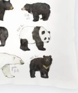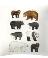De kussenhoes is fluweelzacht en is aan 1 kant bedrukt met een print van verschillende beren op een witte achtergrond.