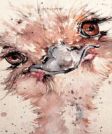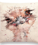 De kussenhoes is vervaardigd van canvas en katoen en is aan 1 kant bedrukt met een print van een vrolijke struisvogel in Watercolor. De achterkant van deze kussenhoes is effen naturel.
