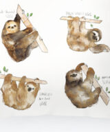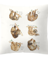 De kussenhoes is fluweelzacht en is aan 1 kant bedrukt met verschillende luiaards op een witte achtergrond.