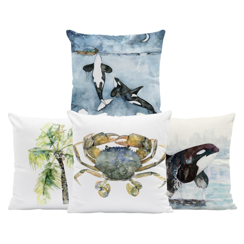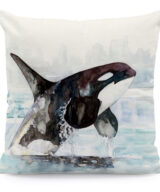 Deze leuke zachte kussenhoes met een print van een orka in watercolor is erg leuk op de kinderkamer, babykamer of op je bed!