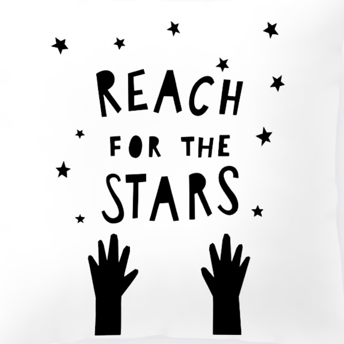De kussenhoes is fluweelzacht en is aan 1 kant bedrukt met de tekst Reach for the stars.
