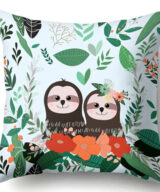 De voorkant van deze kussenhoes heeft een print van een luiaard, de achterkant is effen wit.