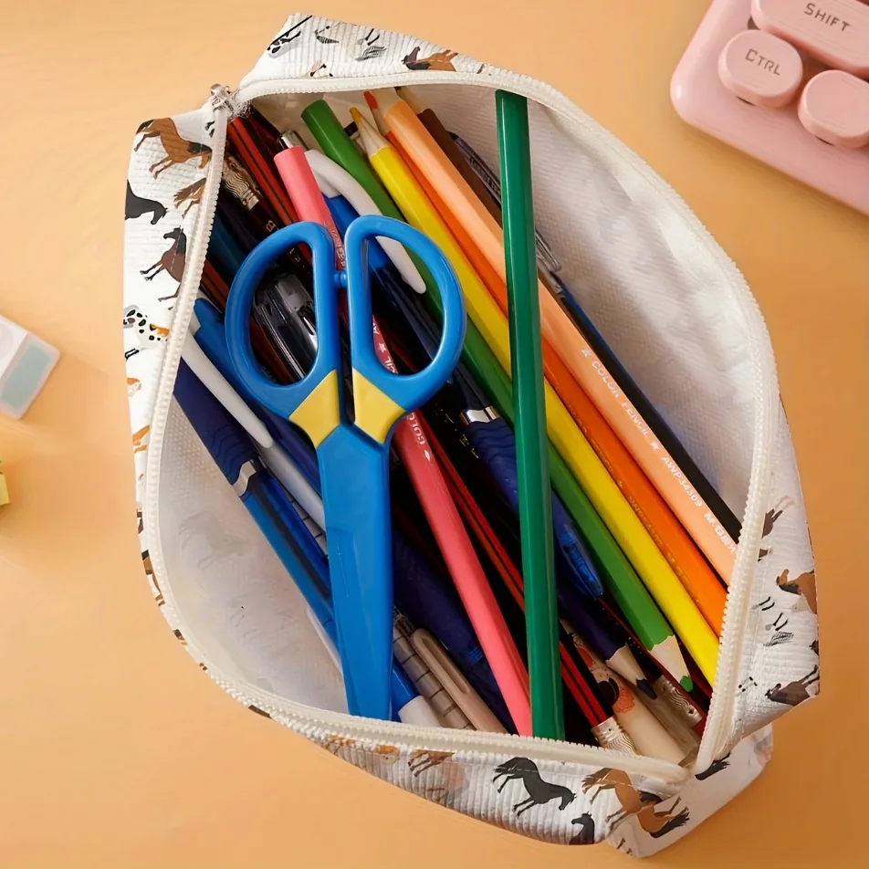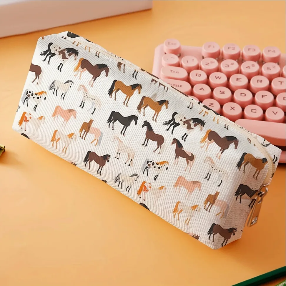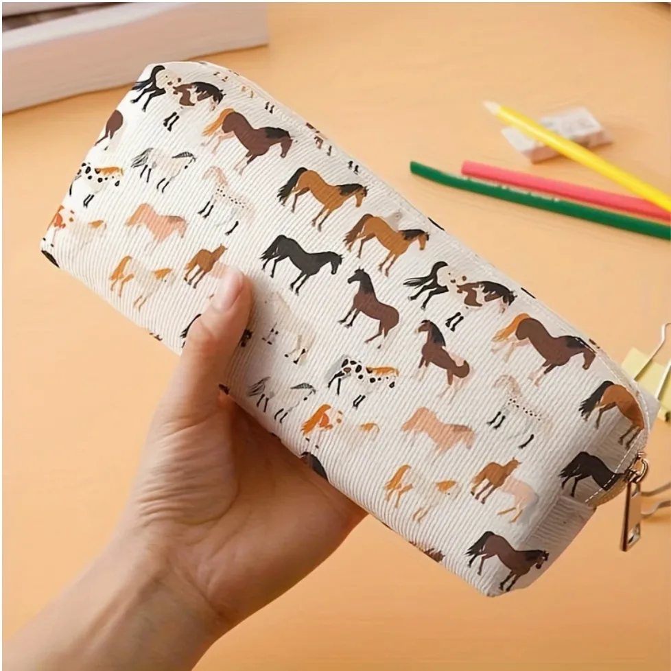 Ben je klaar om het jezelf makkelijker te maken? Met dit etui wordt elke schooldag een stukje eenvoudiger. Het is speciaal ontworpen voor kinderen die gek zijn op paarden. Deze crèmekleurige etui heeft een prachtige dubbelzijdige afbeelding van verschillende paarden, waardoor het een echte blikvanger is.