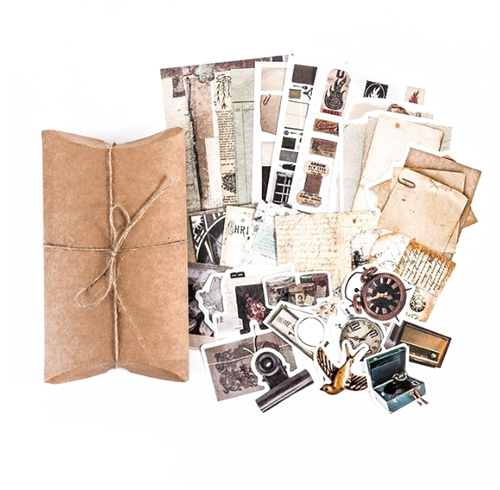 Dit mooie pakket beschikt over 30 verschillende stickers en velletjes papier in een bruine envelop van karton.