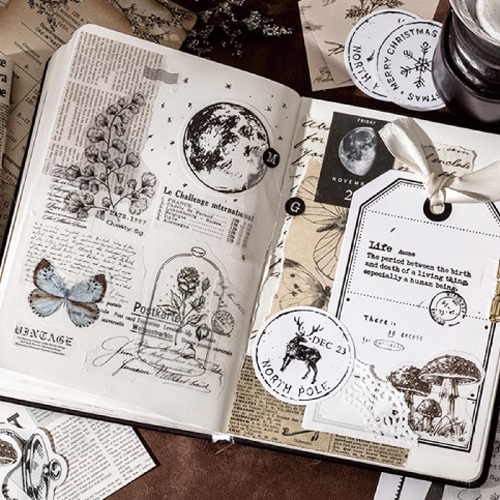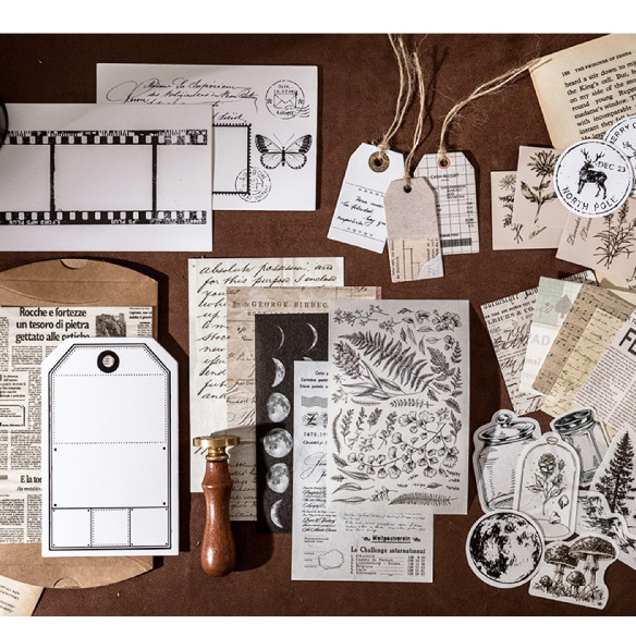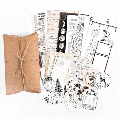 Dit mooie pakket beschikt over 30 verschillende stickers en velletjes papier in een bruine envelop van karton.