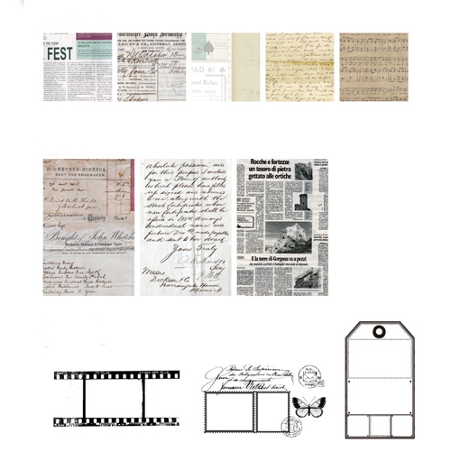 Je ontvangt 30 verschillende handgeschepte velletjes papier en stickers met leuke prints, in verschillende vormen en maten.