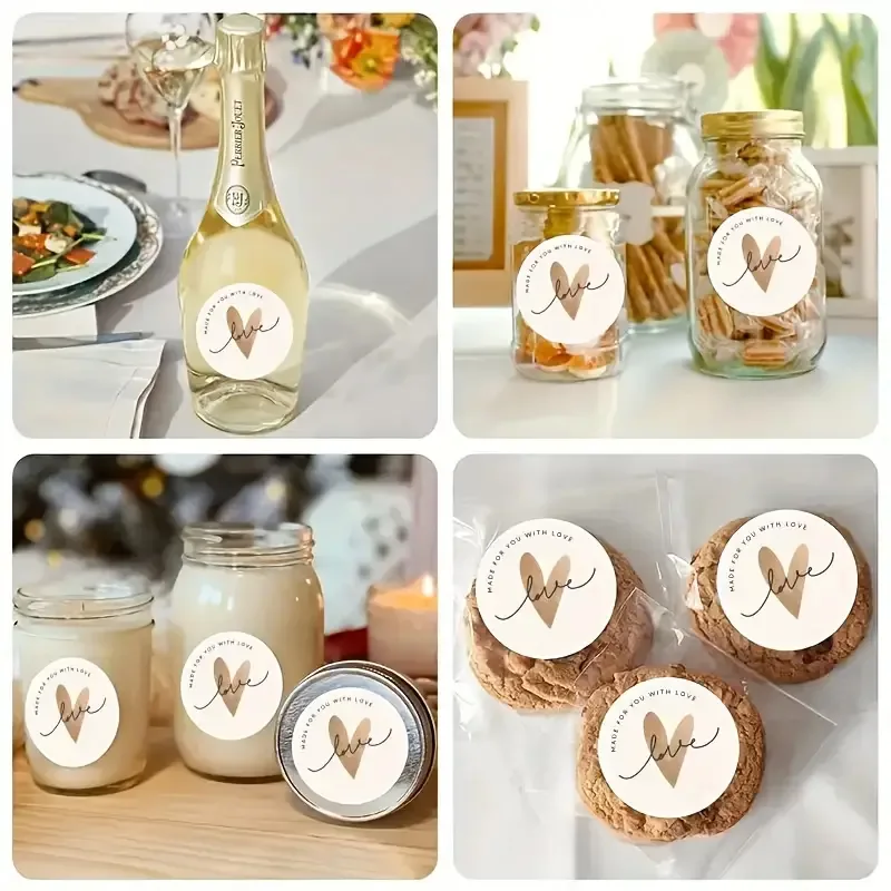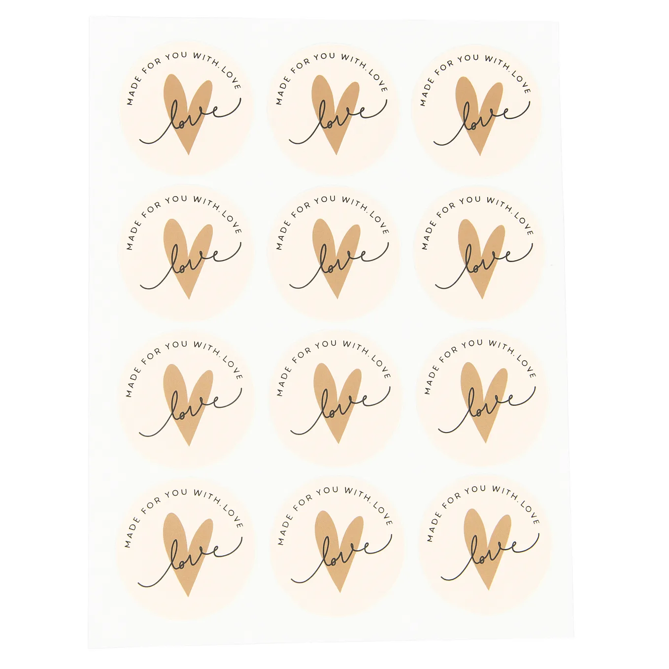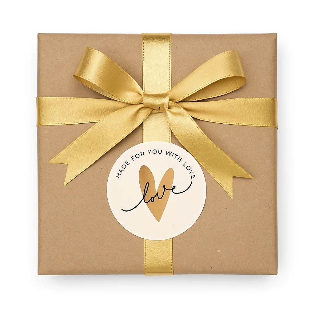 Geef jouw verpakkingen en cadeaus een warme, persoonlijke uitstraling met deze stijlvolle ronde stickers met de tekst “Made for you with love”. Perfect voor zelfgemaakte producten, webshopbestellingen, cadeauverpakkingen en creatieve projecten.