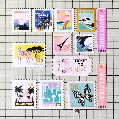Je ontvangt kaartjes met afbeeldingen van verschillende soorten postzegeltjes, tickets en nog veel meer!