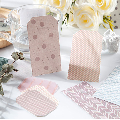 Je ontvangt 60 verschillende handgeschepte velletjes papier met leuke prints, in verschillende formaten.