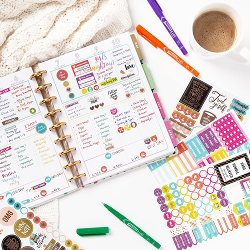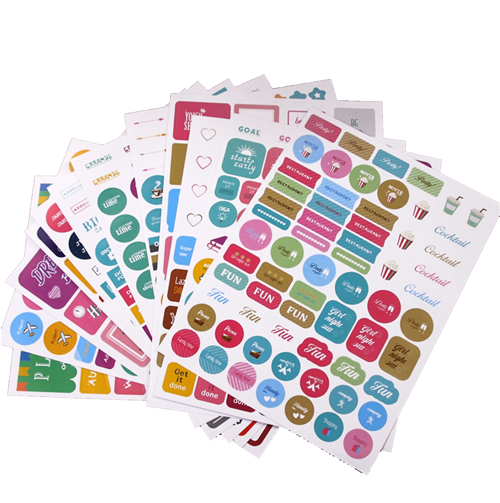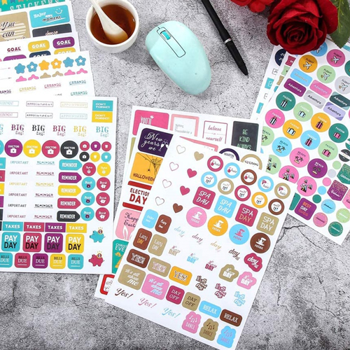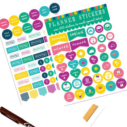 De stickers bevatten woorden zoals reminder, pay day, you can do it, de dagen van de maand en de maanden van het jaar.
