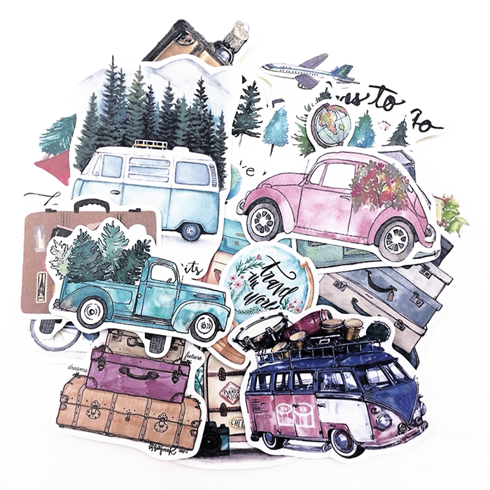 De Vintage stickers met afbeeldingen van kevers, van’s, bomen en koffers zijn ook erg leuk voor scrapbooking, bullet journals of voor het versieren van een cadeau!