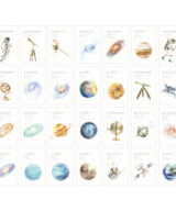 Dit mooie set van 28 verschillende ansichtkaartjes in het thema ruimtevaart kun je gebruiken voor veel verschillende doeleinden!