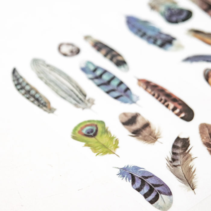 Dit leuke set van 3 stickervellen Feathers kun je uitknippen in elke gewenste vorm!