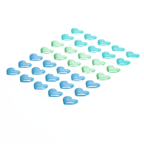 Je ontvangt 30 stickers in de kleuren turquoise, groen en blauw.