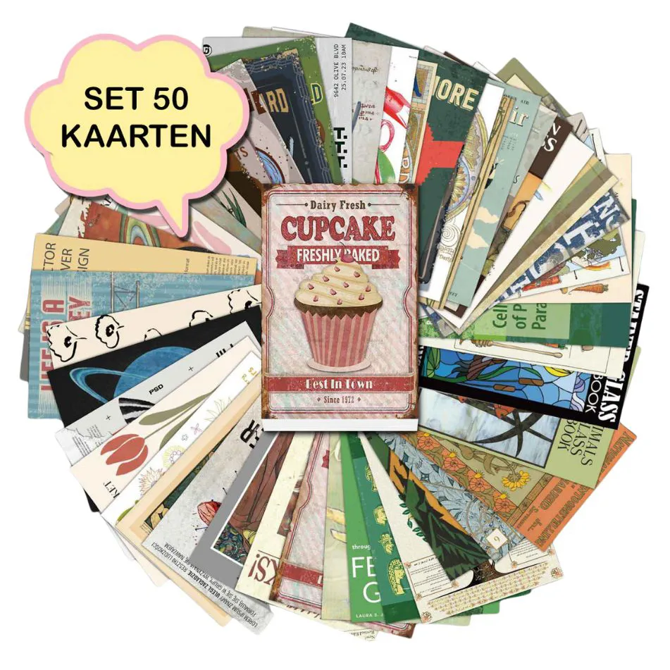 Deze set bevat maar liefst 50 verschillende kaarten met afbeeldingen van affiches en teksten. Elk ontwerp is zorgvuldig geselecteerd om een unieke en inspirerende collectie te creëren. Of je nu graag kaarten verstuurt naar vrienden en familie, ze gebruikt voor knutselprojecten of ze aan de muur wilt ophangen als decoratie, deze set biedt eindeloze mogelijkheden.
