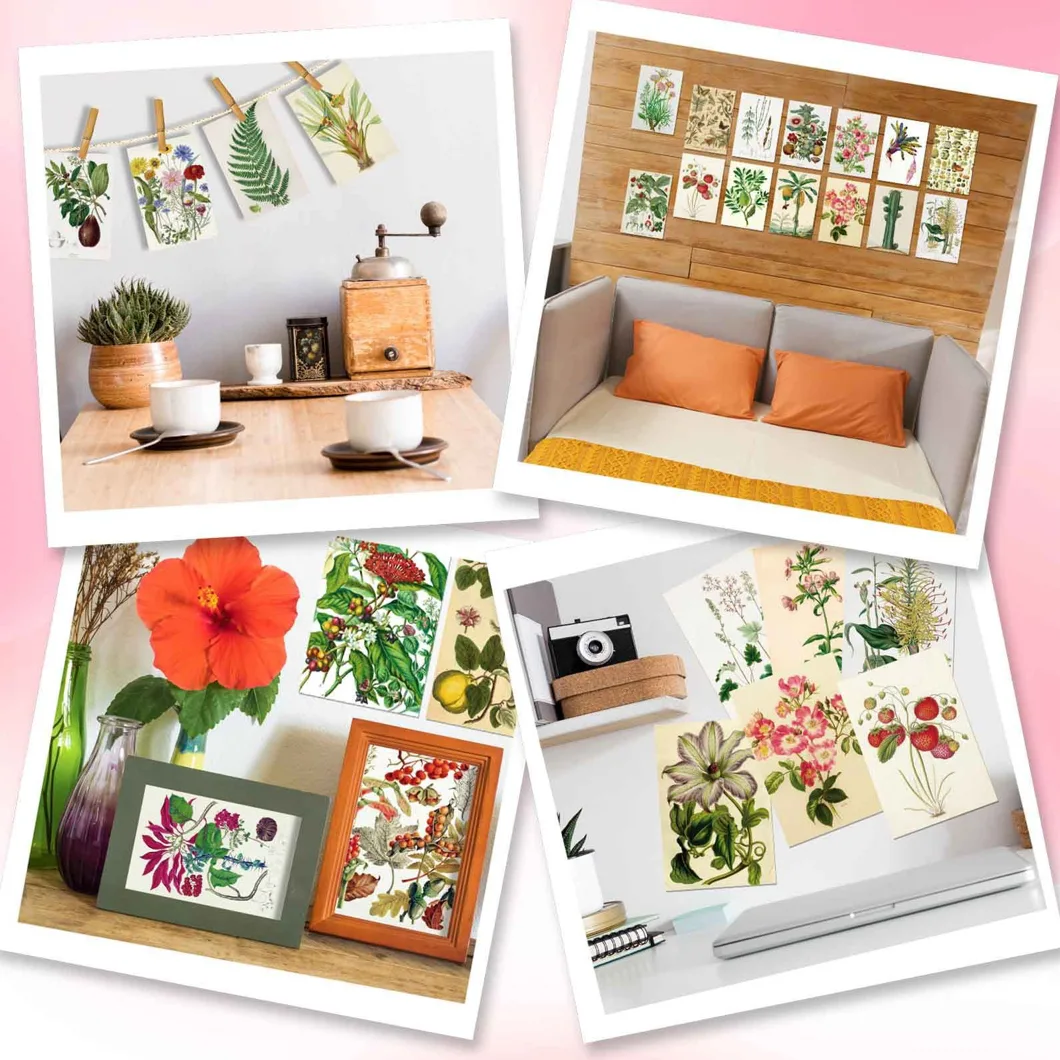 Deze set bevat maar liefst 50 verschillende kaarten met afbeeldingen van bloemen, planten, paddestoelen en palmbomen. Elk ontwerp is zorgvuldig geselecteerd om een unieke en inspirerende collectie te creëren. Of je nu graag kaarten verstuurt naar vrienden en familie, ze gebruikt voor knutselprojecten of ze aan de muur wilt ophangen als decoratie, deze set biedt eindeloze mogelijkheden.