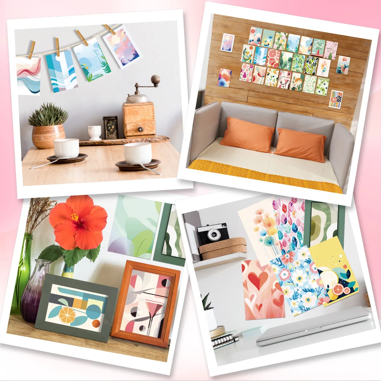 Deze set bevat maar liefst 50 verschillende kaarten met afbeeldingen van bijvoorbeeld planten, fruit en hartjes. Elk ontwerp is zorgvuldig geselecteerd om een unieke en inspirerende collectie te creëren. Of je nu graag kaarten verstuurt naar vrienden en familie, ze gebruikt voor knutselprojecten of ze aan de muur wilt ophangen als decoratie, deze set biedt eindeloze mogelijkheden.