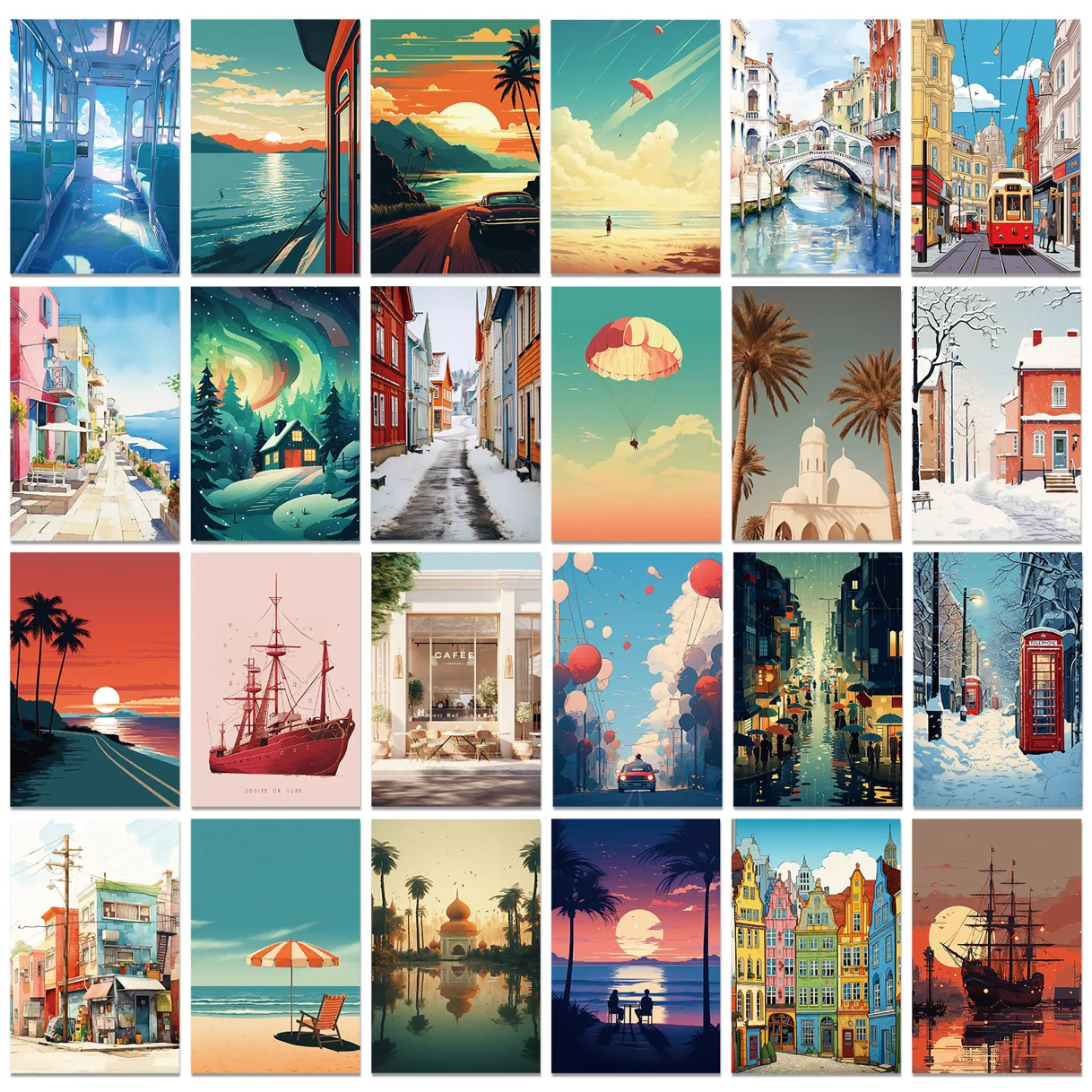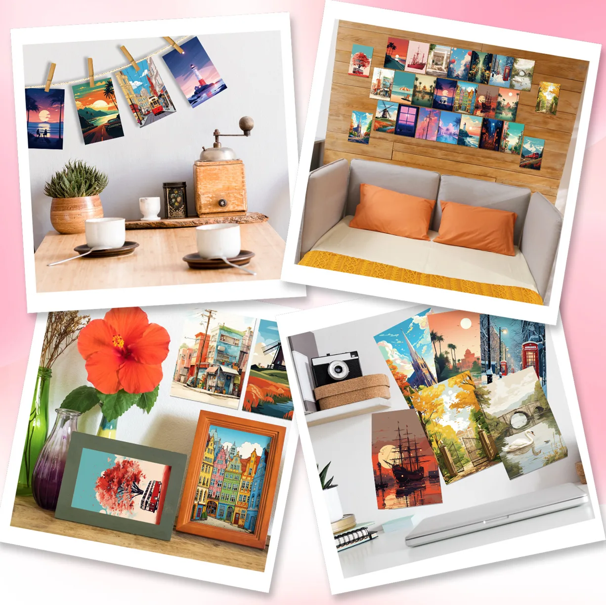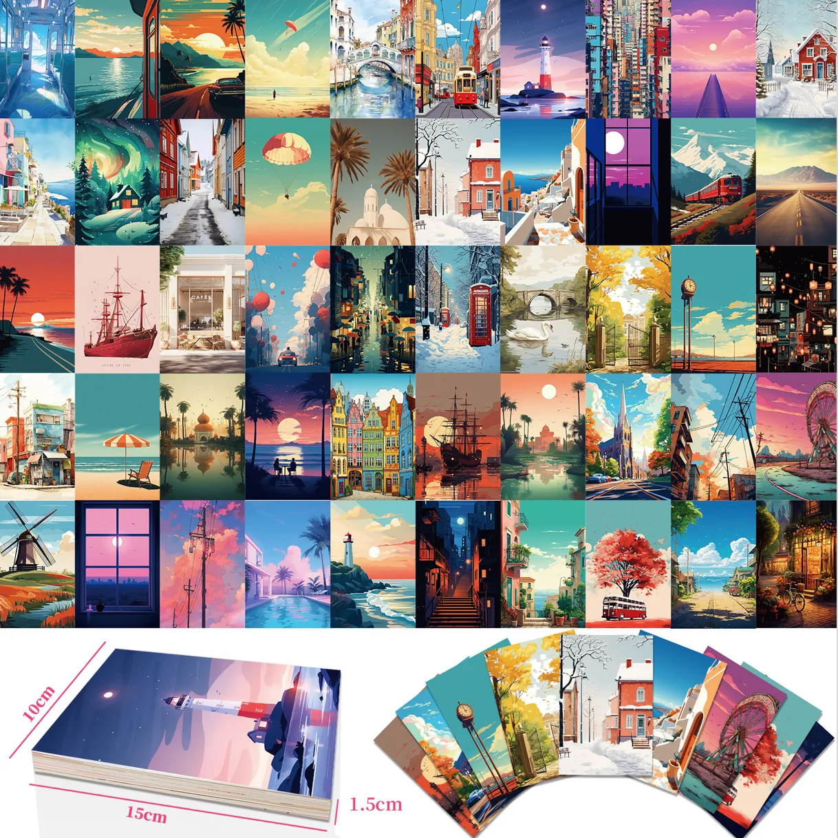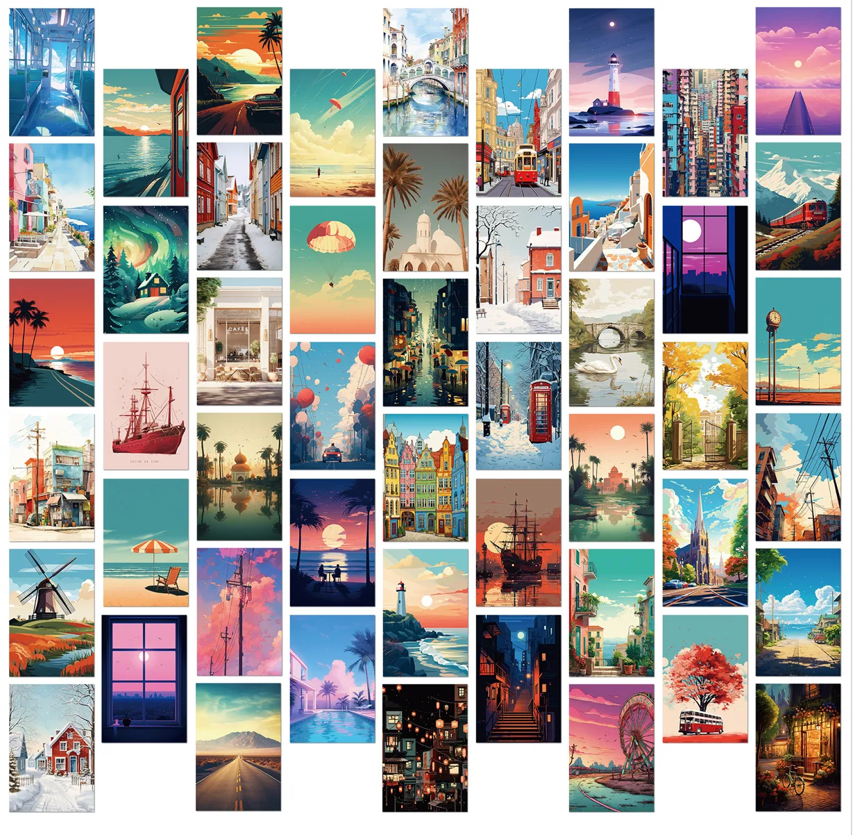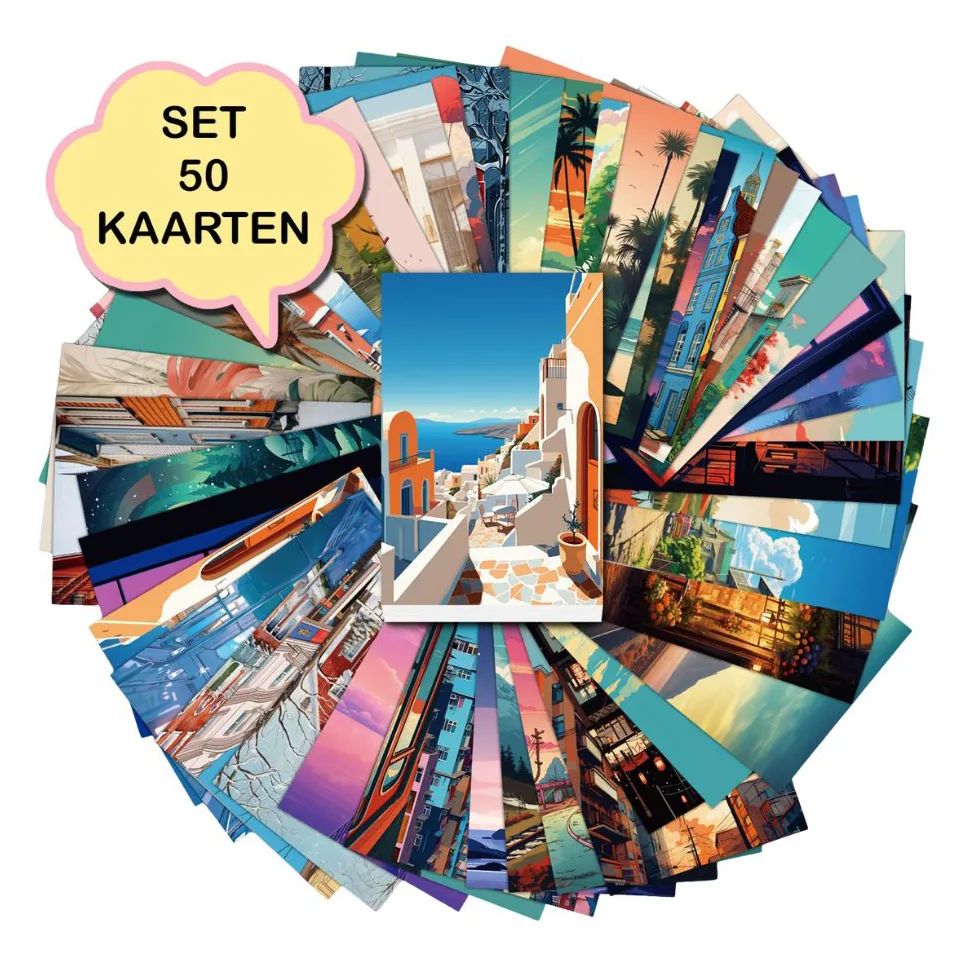 Deze set bevat maar liefst 50 verschillende kaarten met verschillende afbeeldingen van bijvoorbeeld steden, stranden en gebouwen. Elk ontwerp is zorgvuldig geselecteerd om een unieke en inspirerende collectie te creëren. Of je nu graag kaarten verstuurt naar vrienden en familie, ze gebruikt voor knutselprojecten of ze aan de muur wilt ophangen als decoratie, deze set biedt eindeloze mogelijkheden.