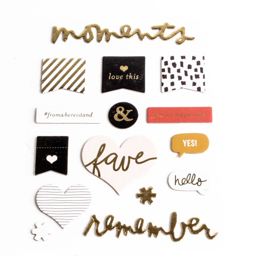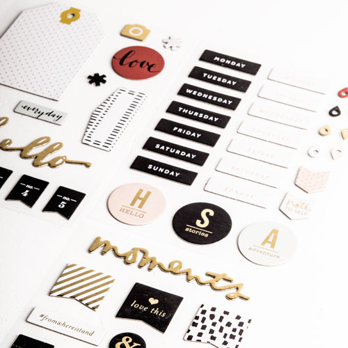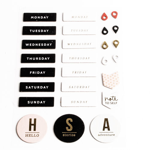 Zo ontvang je stickers met teksten als: Moments, Hello, Rembember, Fave en Love en de dagen van de week in twee kleuren.