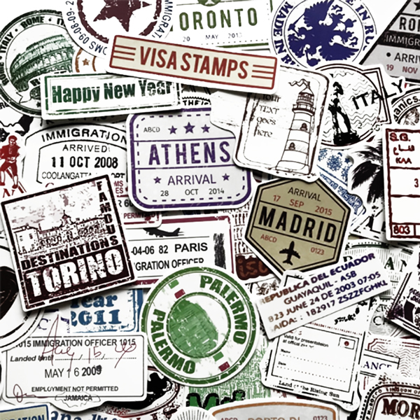 Set van 60 Laptop Stickers Travel en Steden Vintage Deco