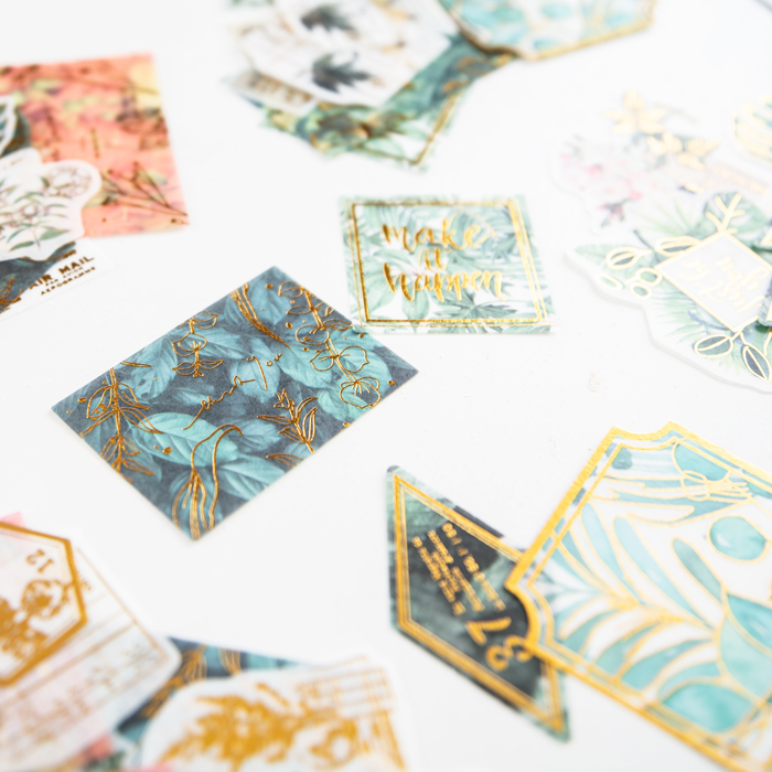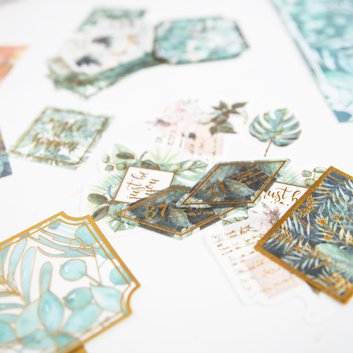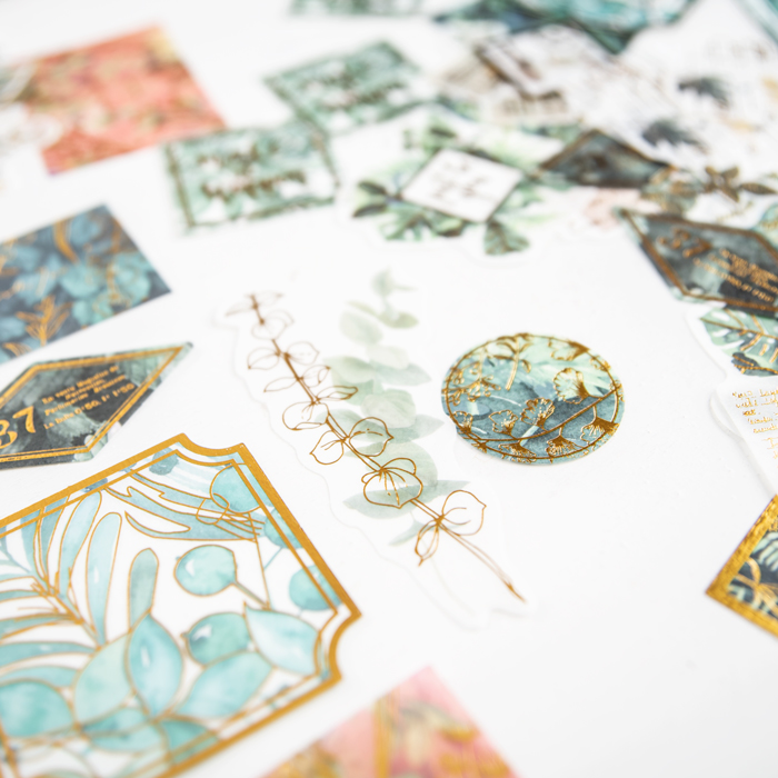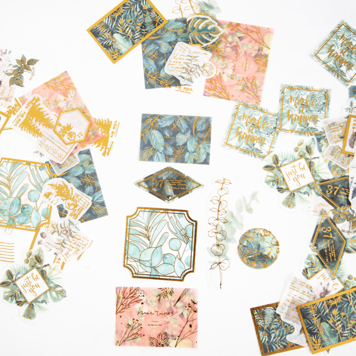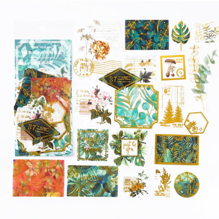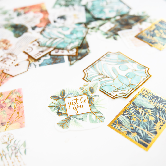 Dit trendy set van 60 verschillende stickers met als hoofdkleuren goud en groen zijn een leuke aanvulling op je knutselcollectie! Het stickerset bestaat uit stickers met bladeren, teksten, bloemen en nog veel meer!