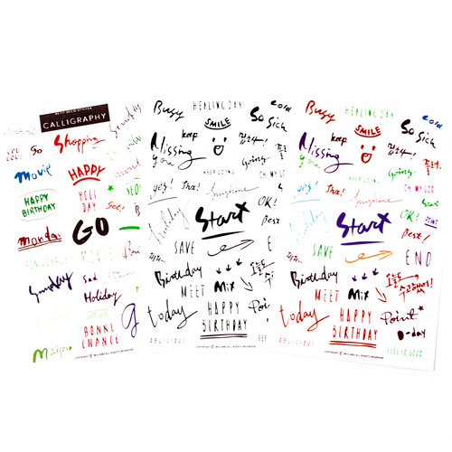 Zo ontvang je een vel met teksten zoals: Paris, Shopping, Cheers, Music en love!