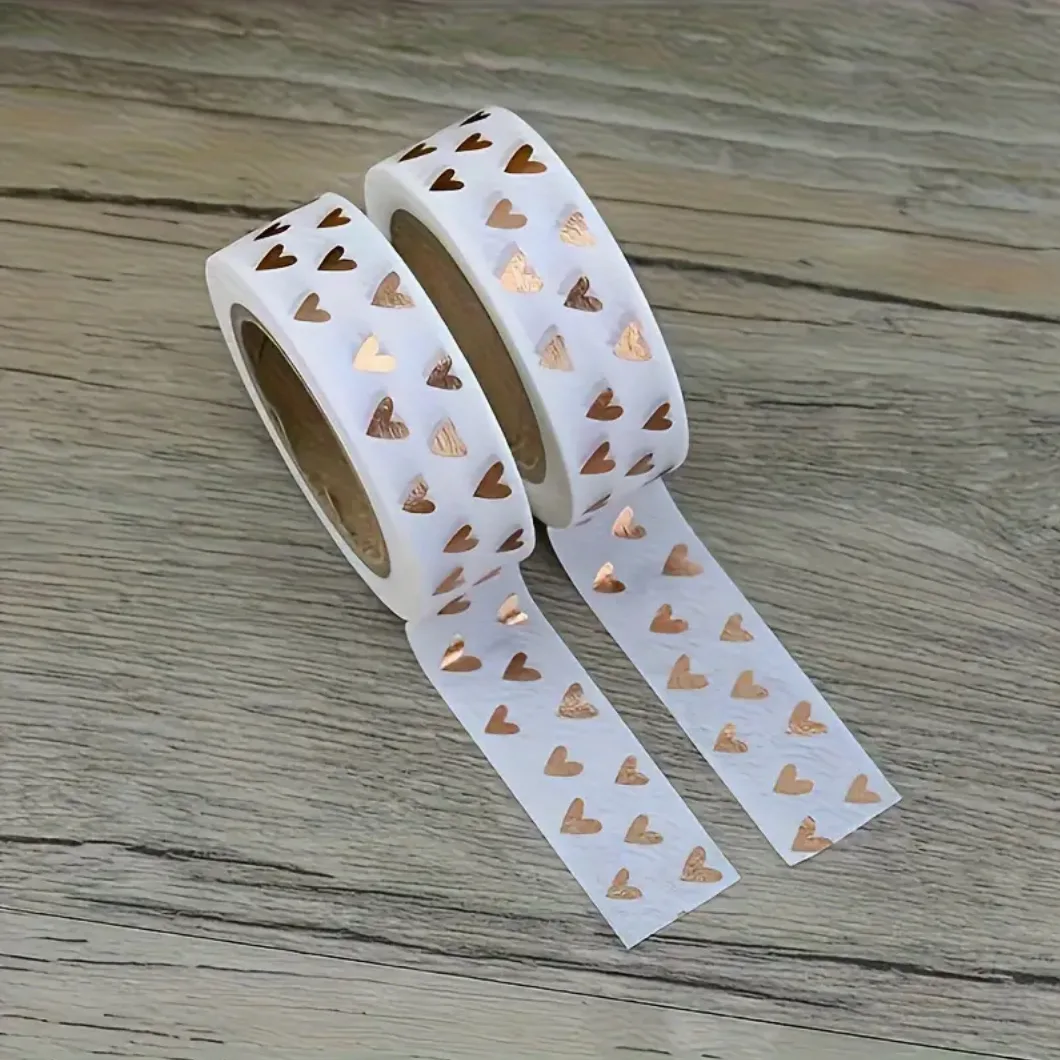 Voeg een vleugje elegantie toe aan je creatieve projecten met deze set van 2 rollen washi tape met gouden hartjes. Deze tape is perfect voor zowel volwassenen als kinderen die graag knutselen en hun creativiteit willen uiten. Het zelfklevende ontwerp maakt het eenvoudig te gebruiken en te verwijderen zonder schade achter te laten.