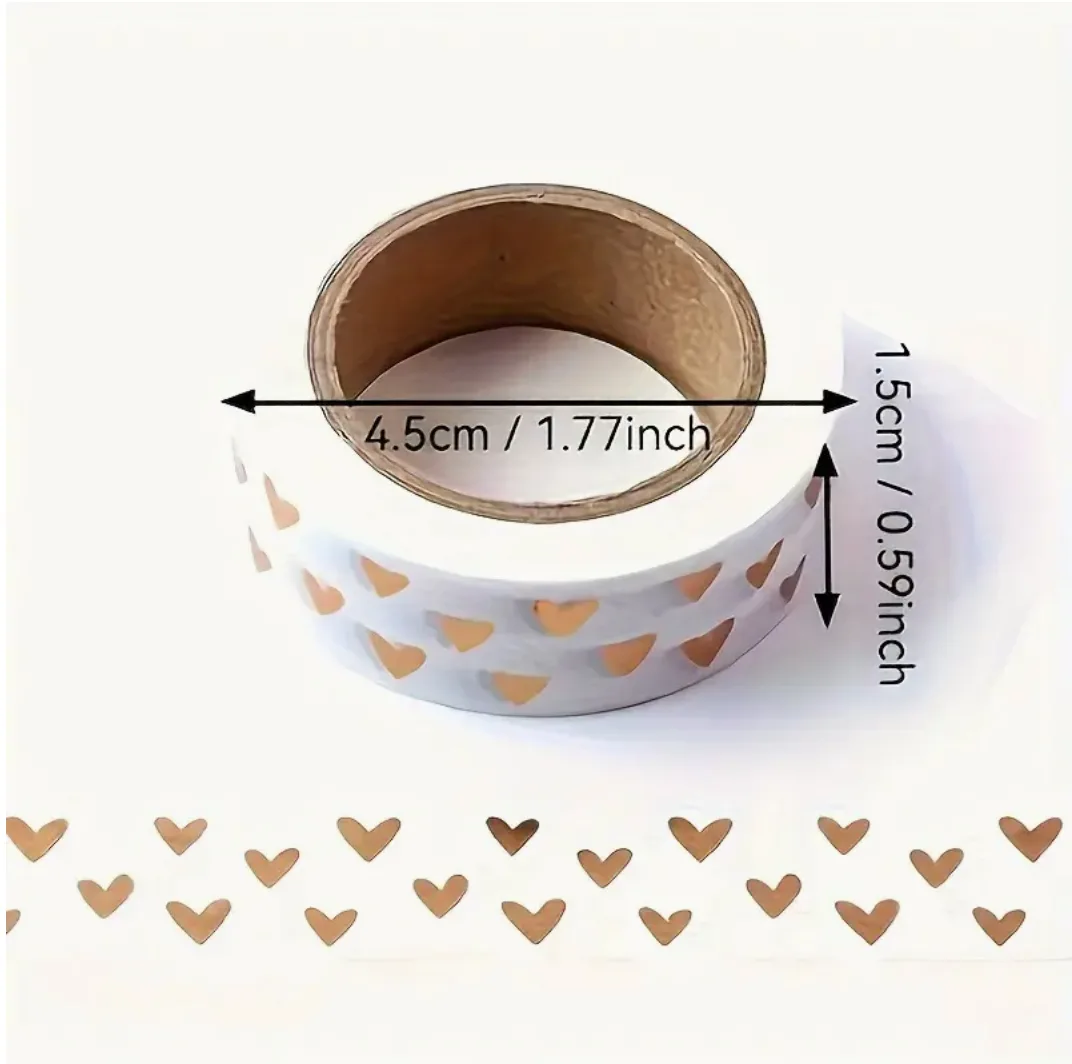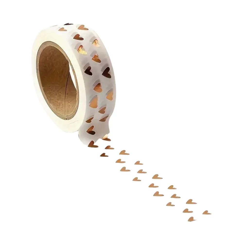 Deze washi tape is ideaal voor een breed scala aan toepassingen. Gebruik het om je bullet journal of agenda op te fleuren, of geef je scrapbookprojecten een persoonlijke touch. De gouden hartjes voegen een sprankelend detail toe aan elke creatie. Ook handig voor het inpakken van cadeaus, waardoor ze er extra speciaal uitzien.