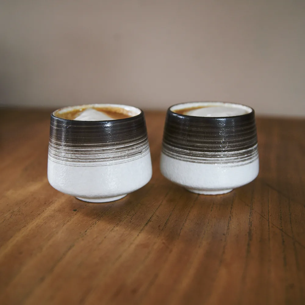 Deze mokjes zijn gemaakt van stevig aardewerk, waardoor ze niet alleen stijlvol, maar ook duurzaam zijn. Ze zijn bestand tegen dagelijkse slijtage en behouden hun mooie afwerking, zelfs bij intensief gebruik.