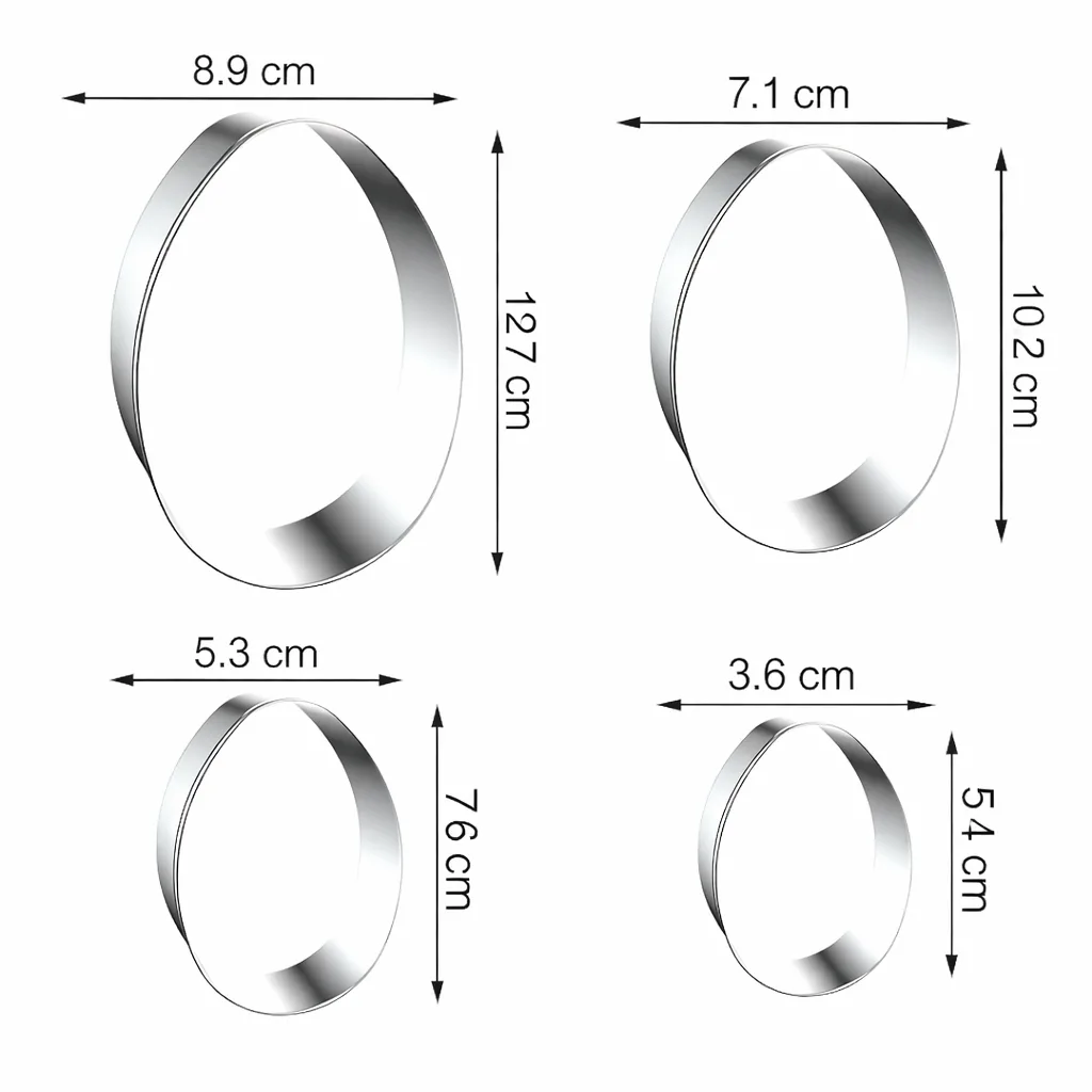 Deze hoogwaardige RVS ei cookie cutter set is perfect voor het maken van koekjes, fondant decoraties en creatieve bakprojecten. De set bestaat uit 4 verschillende maten koekjes uitstekers, ideaal voor elke gelegenheid zoals Pasen, verjaardagen en feestdagen. Dankzij het stevige roestvrij staal zijn de bakvormen duurzaam, scherp en veilig in gebruik. Een onmisbare bakvorm set voor elke bakliefhebber!
