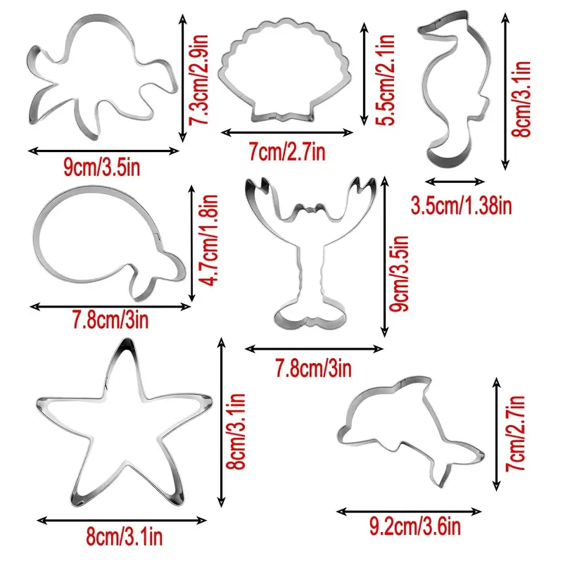 Met deze unieke set van uitsteekvormen breng je de magie van de oceaan naar je keuken. Elke vorm is zorgvuldig ontworpen om gedetailleerde figuren te creëren die perfect zijn voor koekjes of decoraties. Of je nu een verjaardagsfeestje plant of gewoon een creatieve middag in de keuken wilt doorbrengen, deze set biedt eindeloze mogelijkheden.