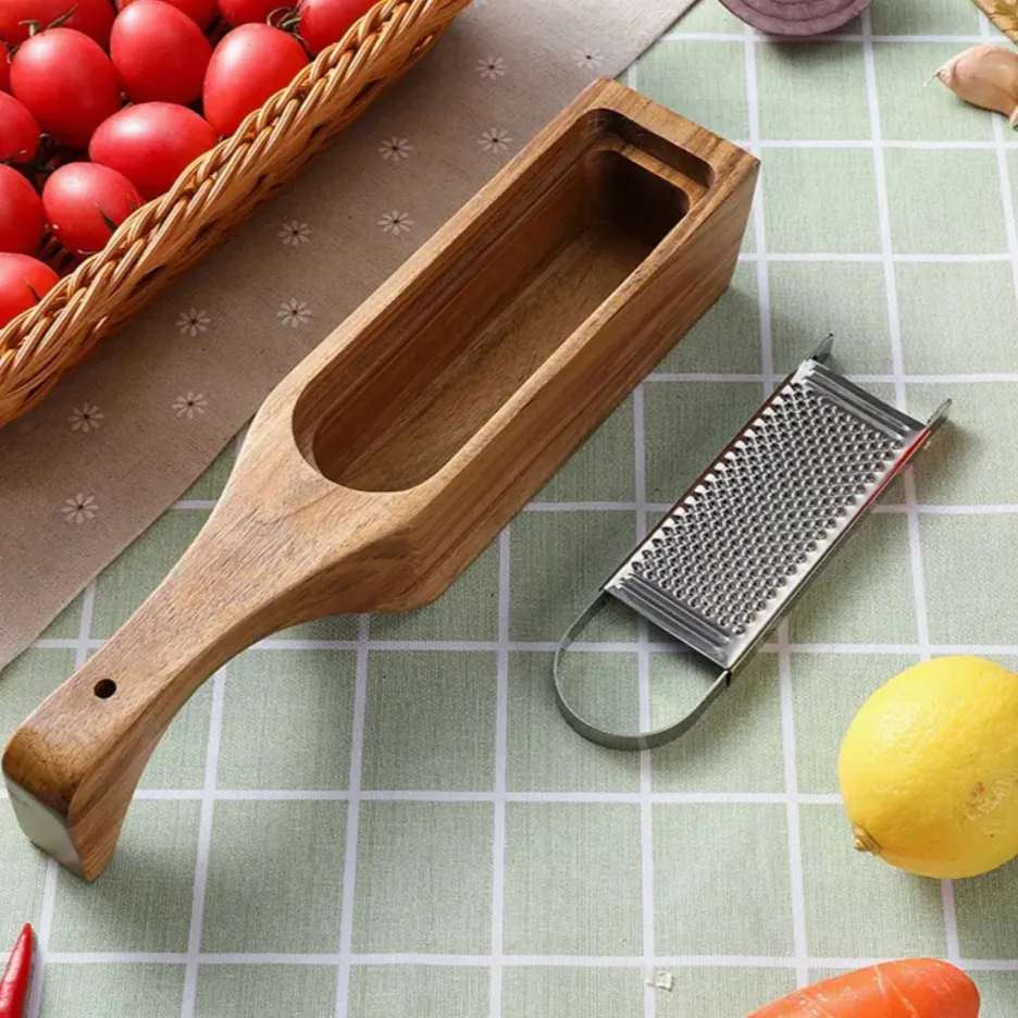 Deze keukenrasp is meer dan alleen functioneel; hij is ook een prachtig item om te zien. Het elegante ontwerp met acaciahout maakt het een echte blikvanger op je tafel tijdens diners of feestjes. Of je nu een carpaccio presenteert of gewoon een etentje organiseert, deze rasp voegt een vleugje luxe toe aan elke gelegenheid.