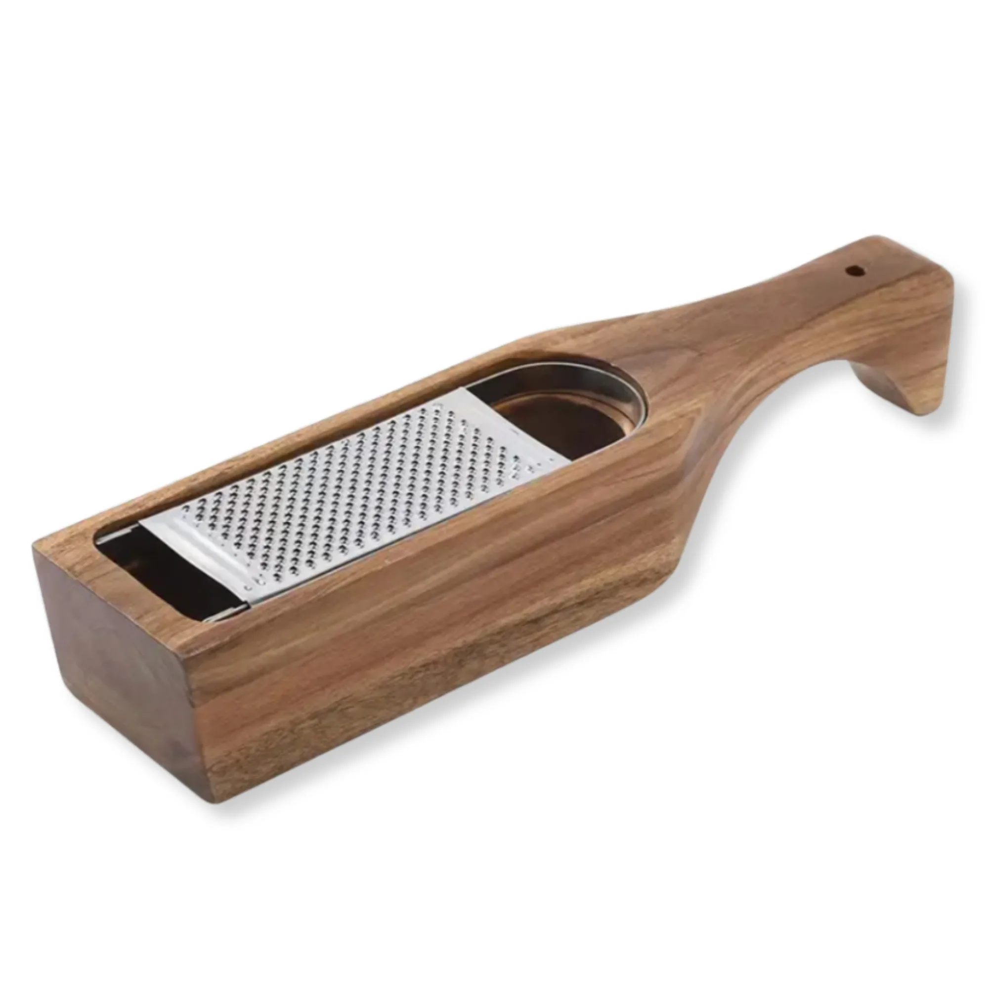 Ontdek de veelzijdigheid van de Rasp Acacia Hout, een must-have voor elke keukenliefhebber. Deze luxe kaasrasp is gemaakt van rvs met een opvangbak van hoogwaardig acaciahout en is voorzien van een ergonomisch handvat voor optimaal gebruiksgemak. Of je nu kaas, chocola of harde groenten en fruit zoals wortels en appels wilt raspen, deze stijlvolle rasp maakt het allemaal mogelijk. Het uitneembare roestvrij stalen mes biedt een uitstekend en gelijkmatig snijresultaat vanwege de precieze verdeling van de mesjes.