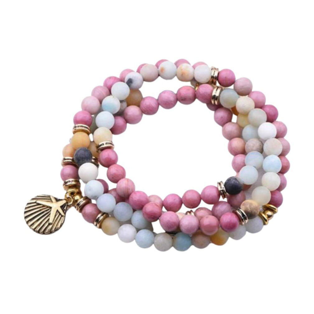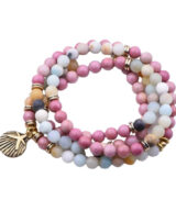 Deze trendy vegan armband is handgemaakt van elastisch koord en en is voorzien van de edelsteen Amazoniet in verschillende tinten en een goudkleurige hanger in de vorm van een schelp met een zeester. Een armband met een zomerse uitstraling die je casual of juist chique kunt dragen. De armband is elastisch en kan ook als ketting worden gedragen. Een mooi cadeautje voor jezelf of iemand anders! Deze armband wordt geleverd in een luxe geschenkverpakking.