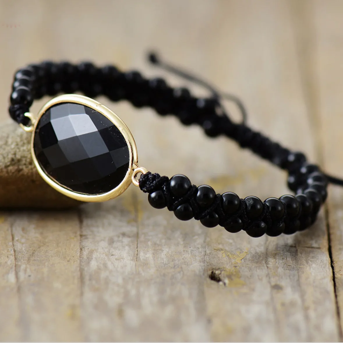 - Gevlochten design met vegan zwart waxcord.