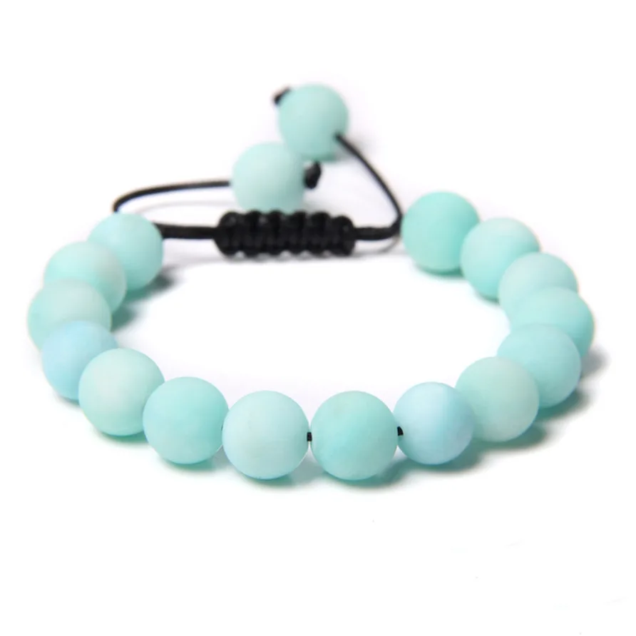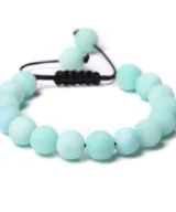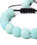 Deze prachtige vegan armband is handgemaakt en voorzien van mat-blauwe ronde kralen vervaardigd uit de edelsteen Amazoniet.. De matte kralen zijn geregen op een verstelbaar koord, met aan beide uiteinden een kraal. Een trendy aanvulling op je outfit! Een natuurlijke uitstraling met een subtiel effect.