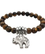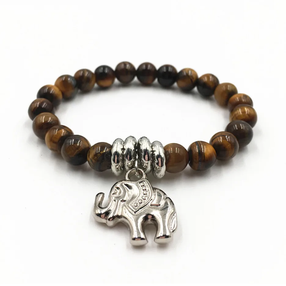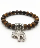 Deze subtiele Armband Bruin Olifantje is handgemaakt van elastisch koord, bruine tijgeroog edelstenen, zilverkleurige kralen en een hanger van een olifantje. Deze vegan armband is een mooie aanvulling op je look en een leuk cadeau voor jezelf of iemand anders.