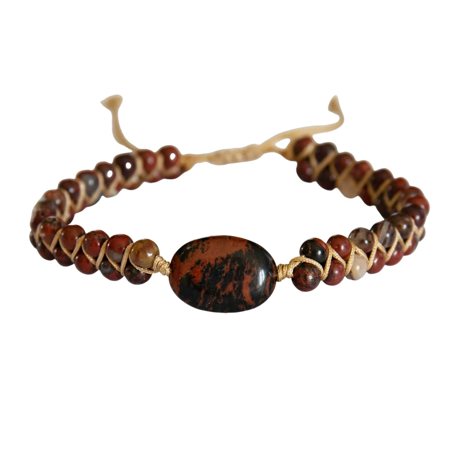 Deze schitterende vegan armband is handgemaakt van bruin vegan waxcord en edelstenen. De armband is vervaardigd van Jaspis edelstenen in de kleuren rood en bruin. Een trendy armband met een vrouwelijke touch! Perfect te dragen door dames. Het lichtbruine waxcord heeft een verstelbare sluiting, waardoor de armband draagbaar is voor zowel smalle als bredere polsen. Deze armband wordt geleverd in een luxe geschenkverpakking.