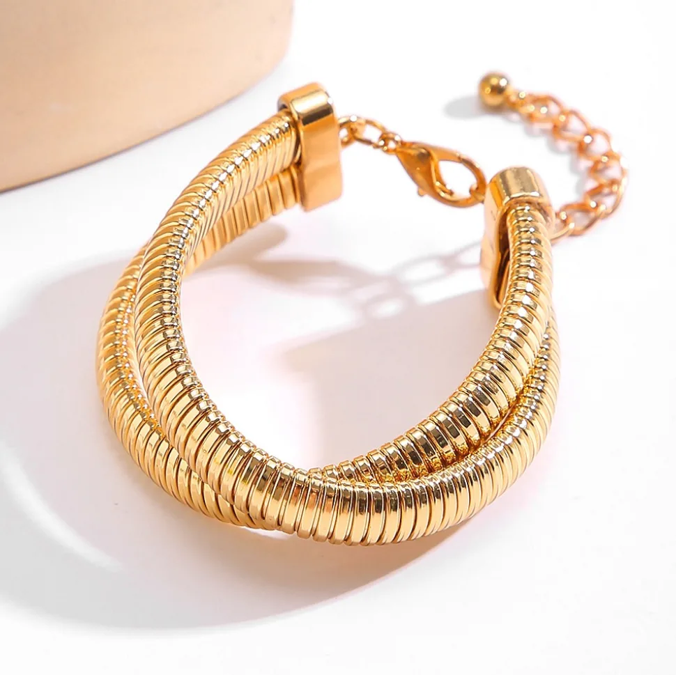 Ben je op zoek naar een opvallende armband die zowel stoer als chique is? De Marama Armband Nila Goud is precies wat je nodig hebt. Deze prachtige armband is gemaakt van stainless steel met gouden plating, waardoor hij niet alleen schitterend is, maar ook duurzaam. Dankzij de brede banden is het een echte eyecatcher die elke outfit compleet maakt.