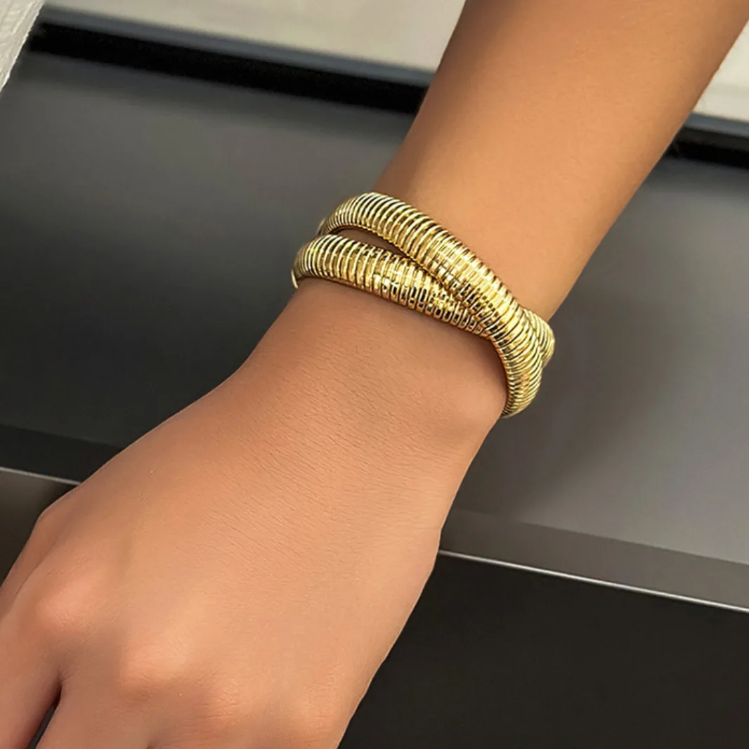 Draag deze armband bij elke gelegenheid. Of je nu kiest voor een casual look of een elegante avondjurk, de Marama Armband Nila Goud past er perfect bij. De brede banden geven het een unieke uitstraling die zowel in het oog springt als subtiel genoeg is om dagelijks te dragen.