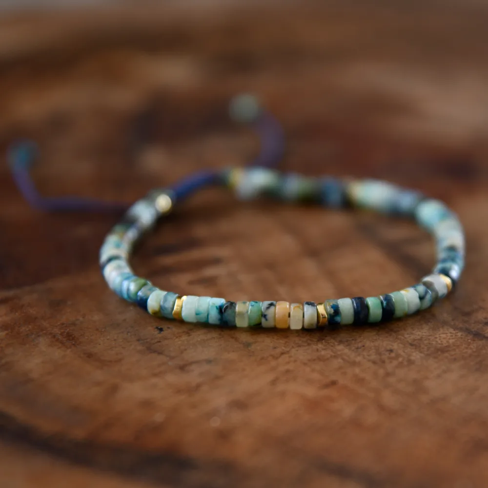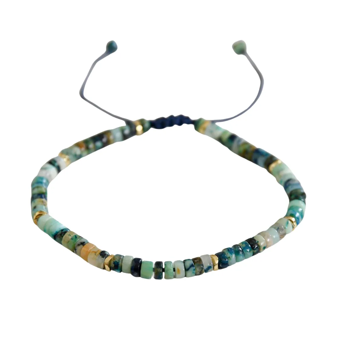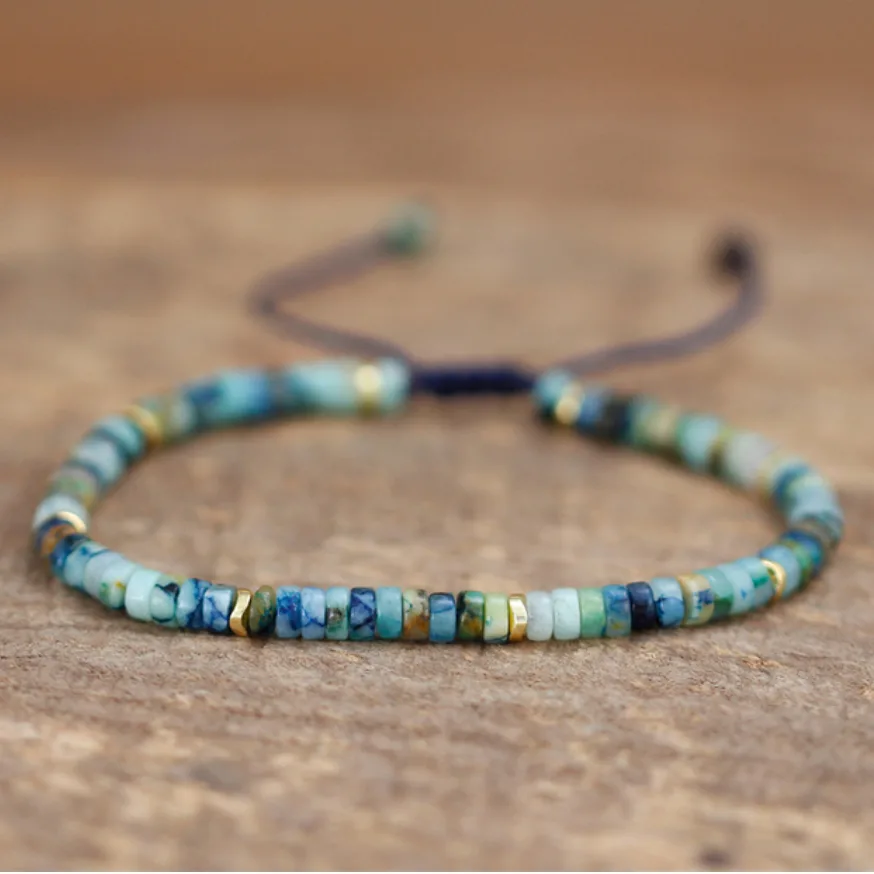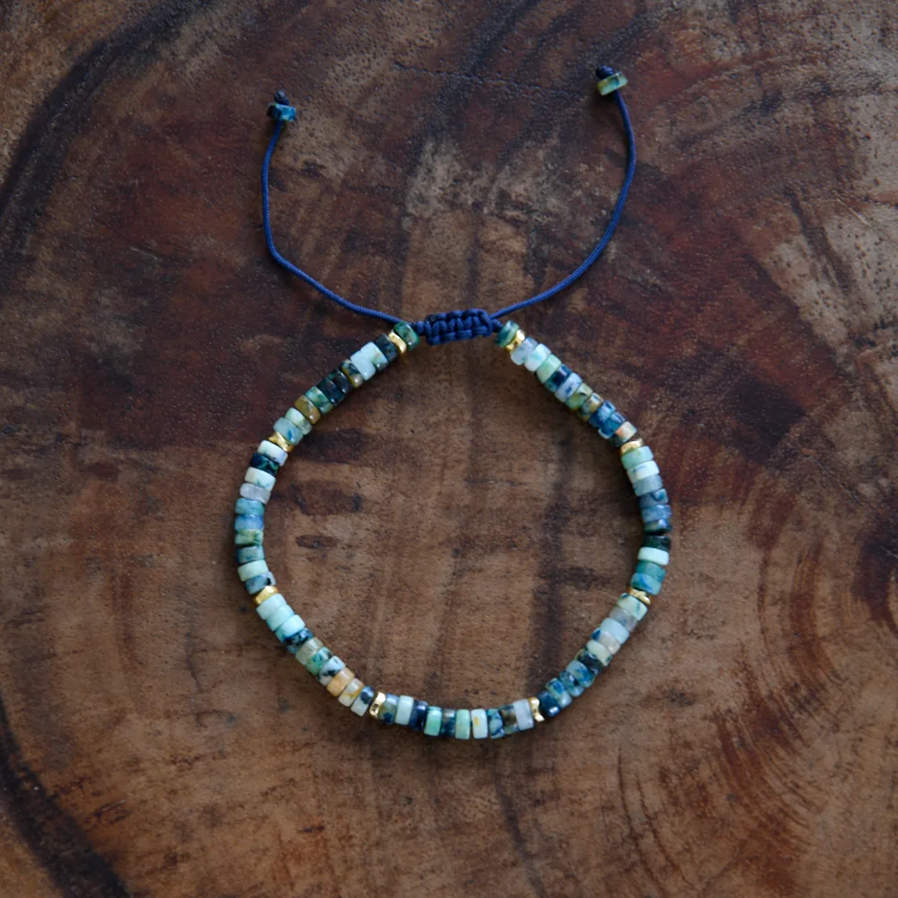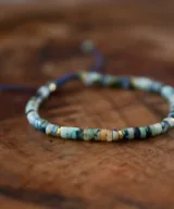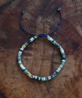 Deze trendy vegan armband is handgemaakt van blauw waxcord en is voorzien van kleine ronde kralen in verschillende tinten blauw, en gouden kralen. De blauwe kralen zijn vervaardigd uit de edelsteen Jaspis. Een armband met een natuurlijke uitstraling die je casual of juist chique kunt dragen. Een mooi cadeautje voor jezelf of iemand anders! Deze armband wordt geleverd in een luxe geschenkverpakking.