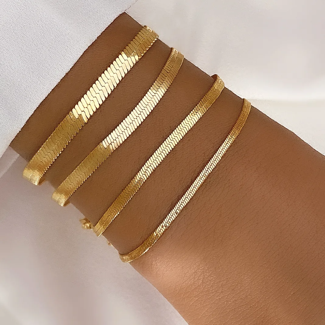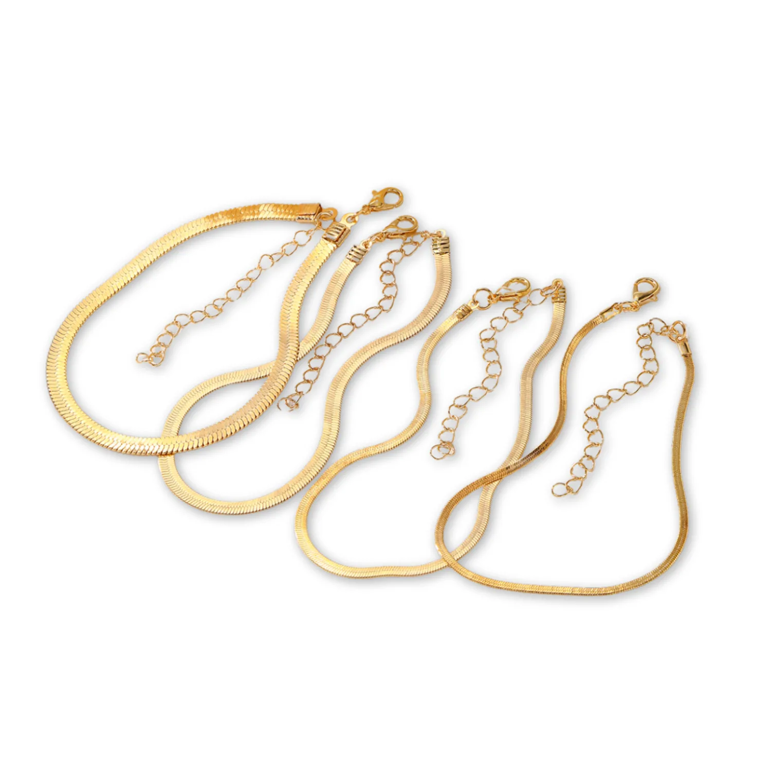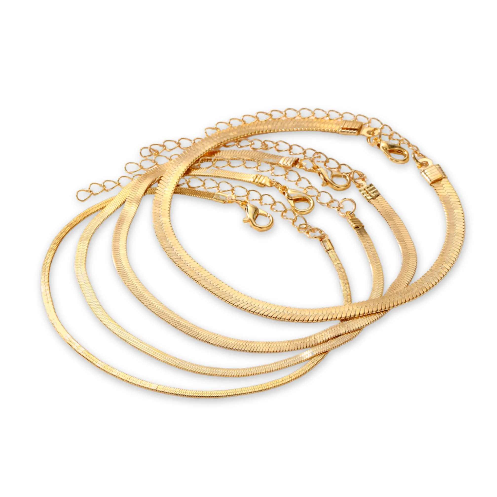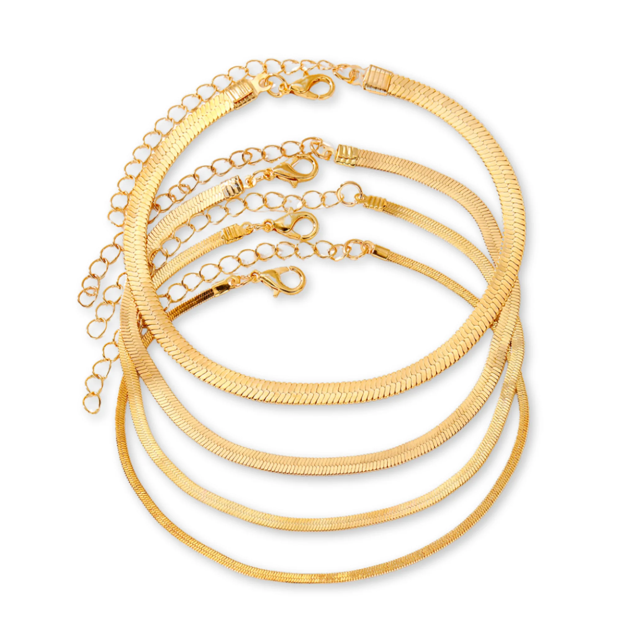 Armbanden Set Celine van Marama is speciaal ontworpen voor dames die houden van een klassieke en tijdloze uitstraling. De set bestaat uit vier prachtige armbanden, elk met een unieke platte schakel en verschillende breedtes. Dankzij de elegante gouden plating zijn deze armbanden een perfecte aanvulling op elke outfit.