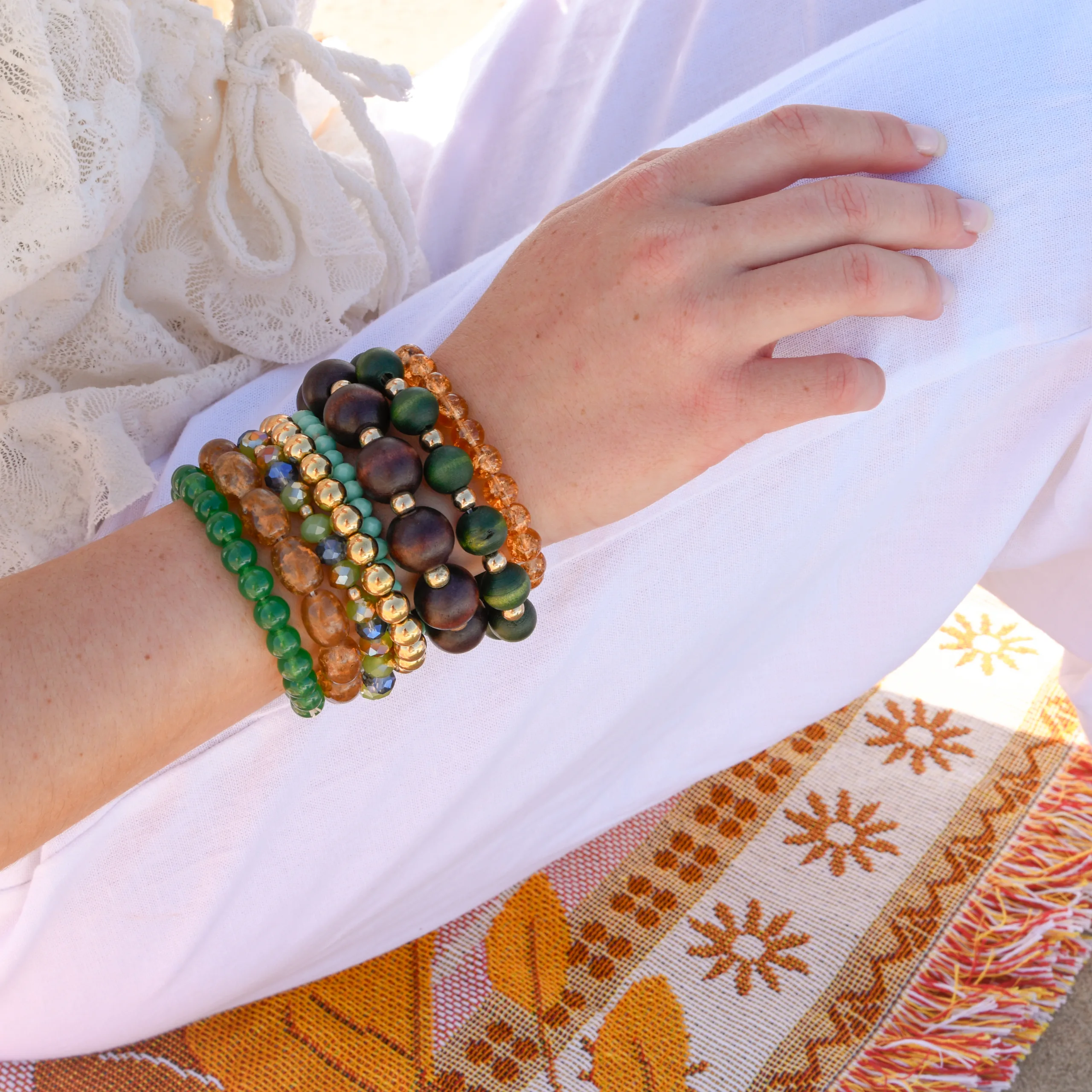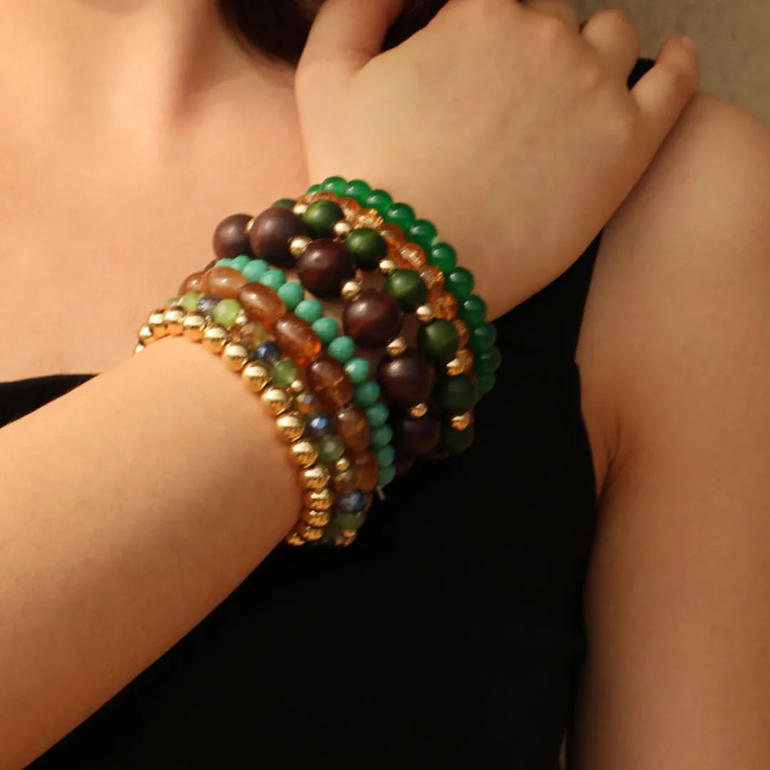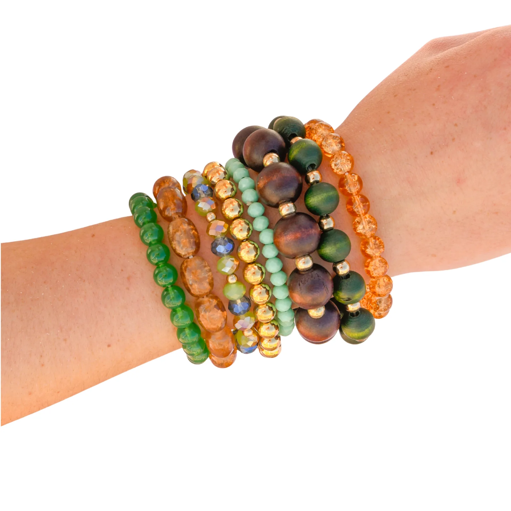 - Kralenarmband: Iedere armband in de set is voorzien van kleurrijke kralen die een speelse en stijlvolle look geven.