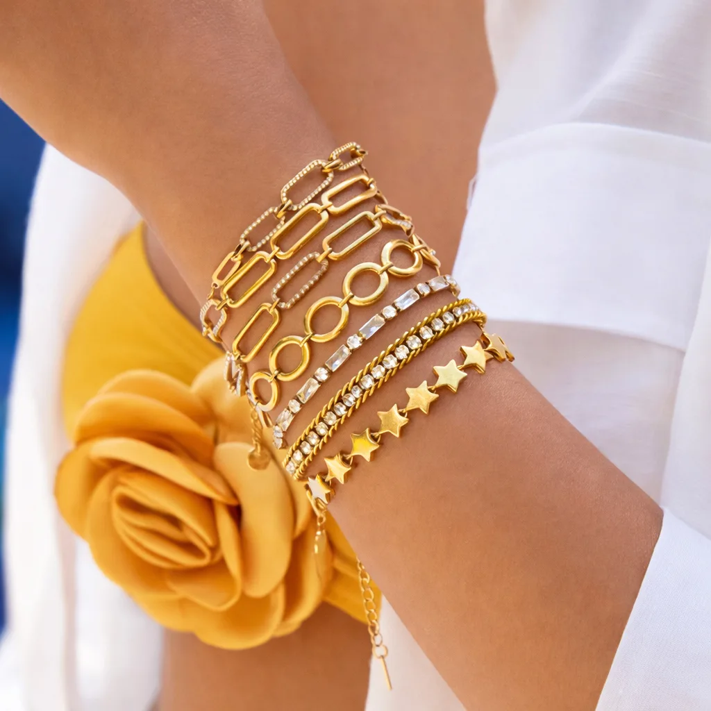Deze armband is niet alleen geschikt voor dagelijks gebruik, maar ook voor speciale gelegenheden. Of je nu naar een casual bijeenkomst gaat of een chique feest, de Aurora Oval Chain Armband voegt altijd net dat beetje extra toe aan je outfit. Dankzij het tijdloze design met ovale cirkels, kun je hem moeiteloos combineren met andere sieraden.