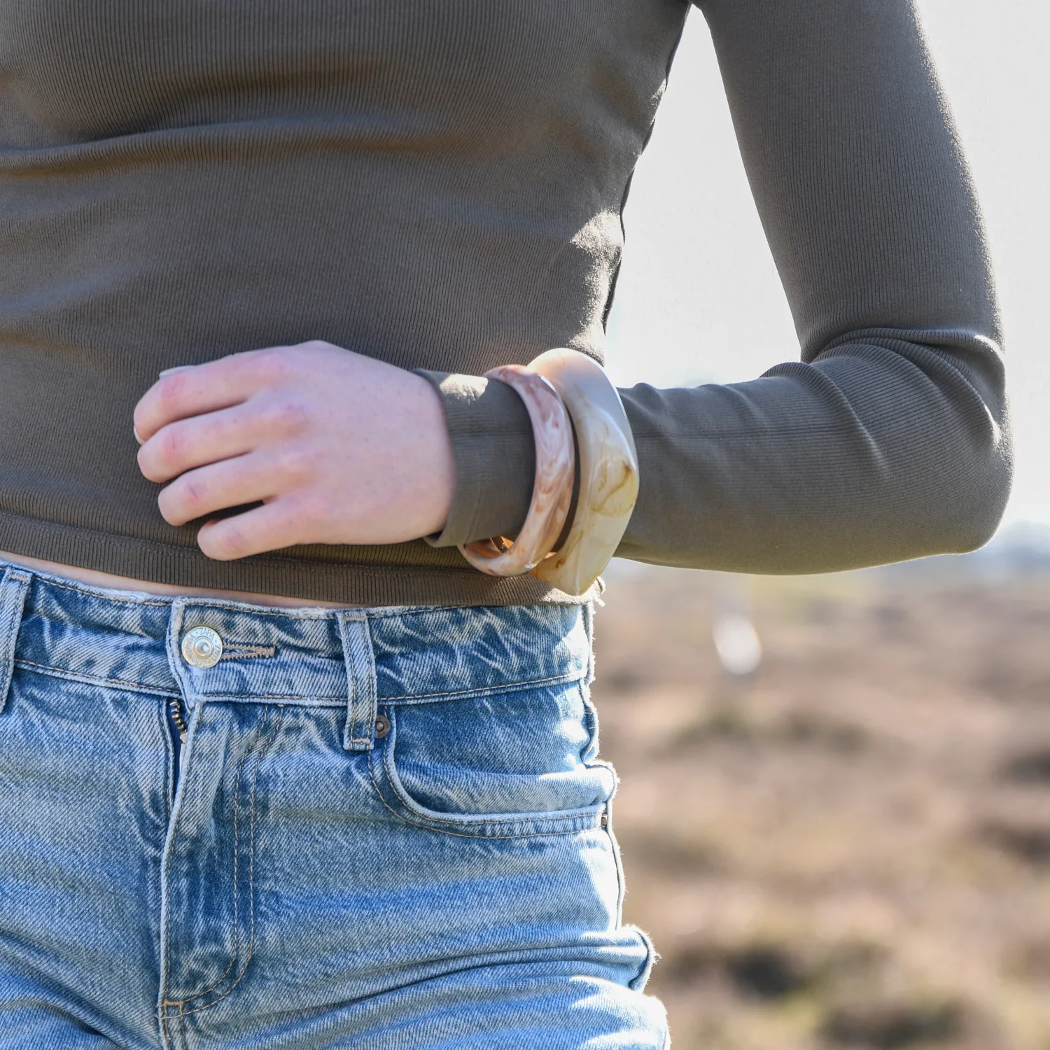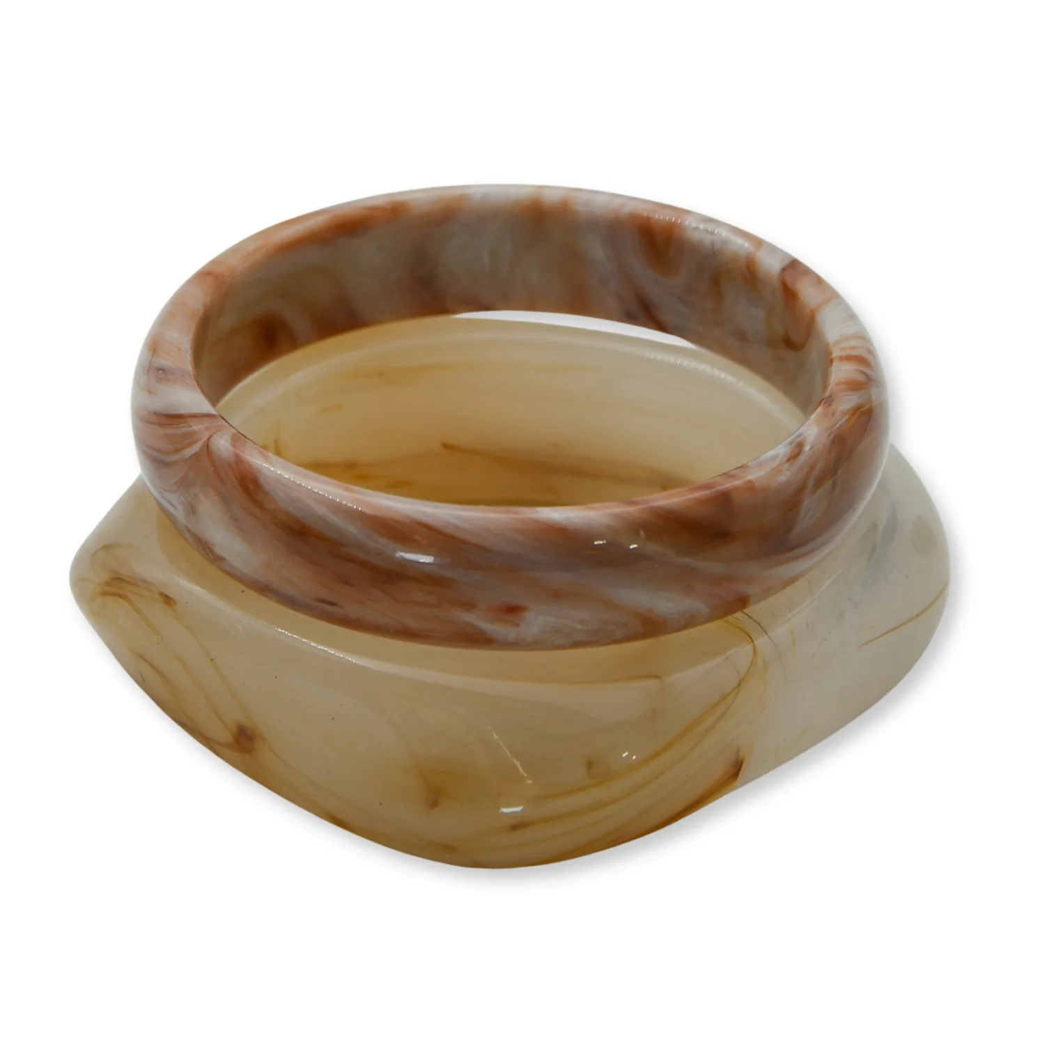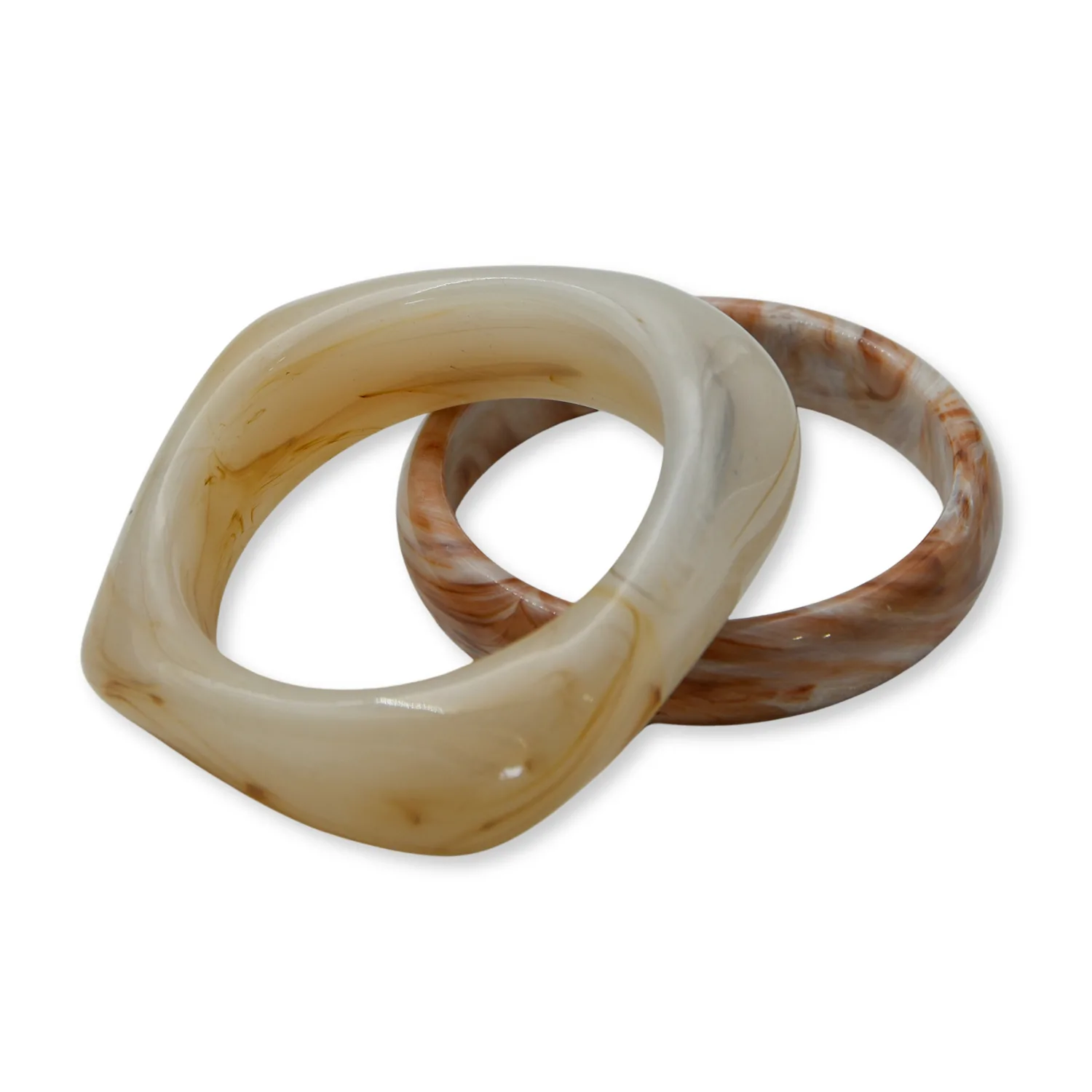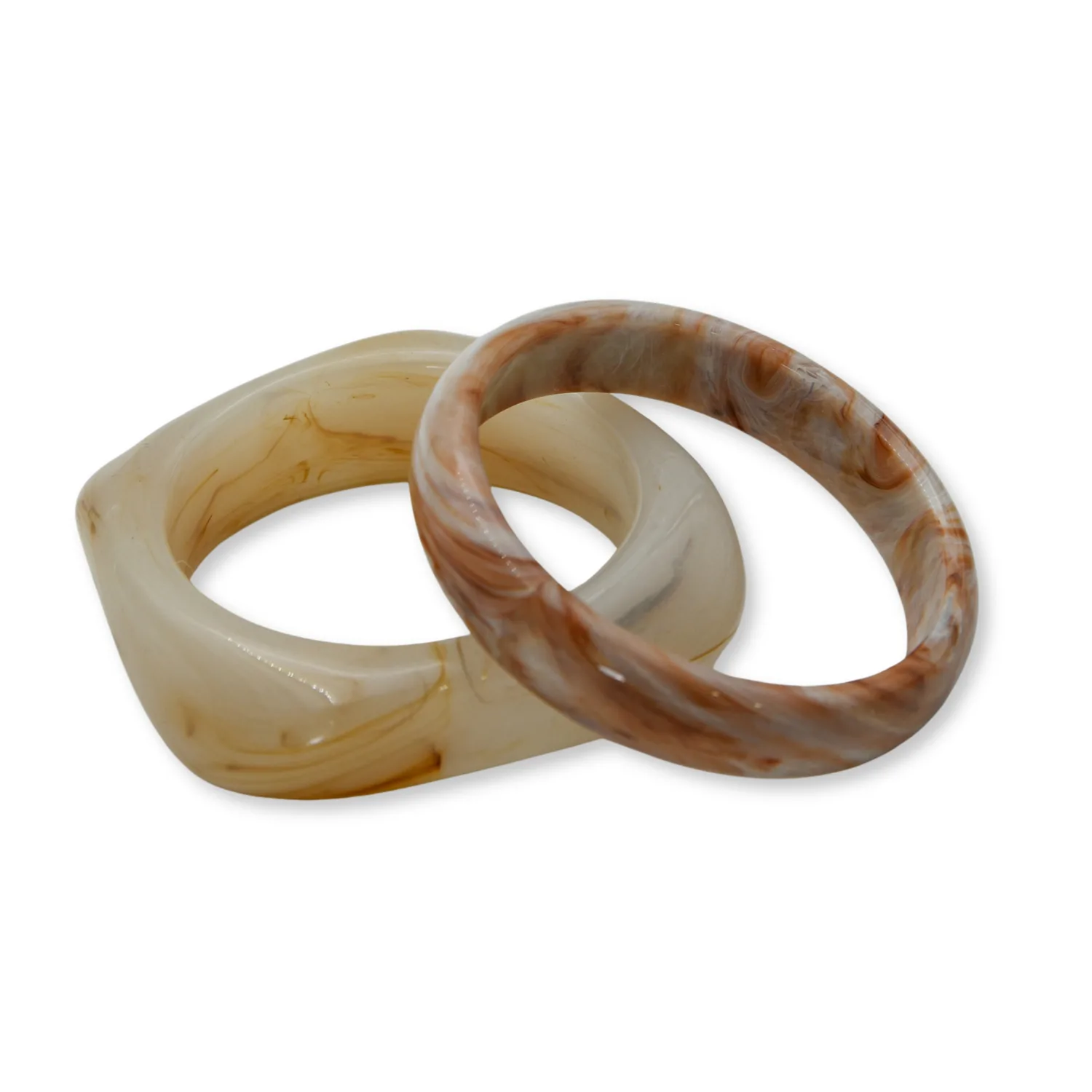Bangle Set van 2 – Crème & Bruin met Marmer Effect