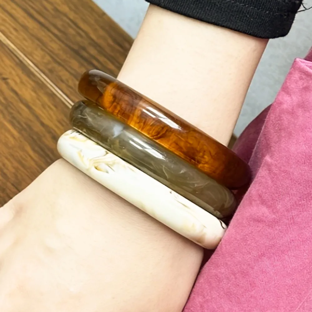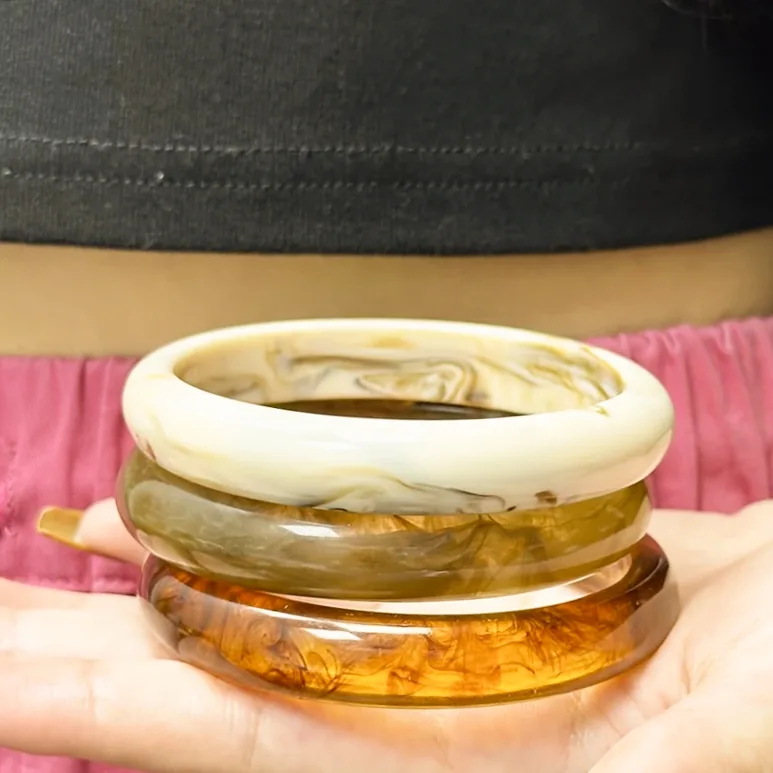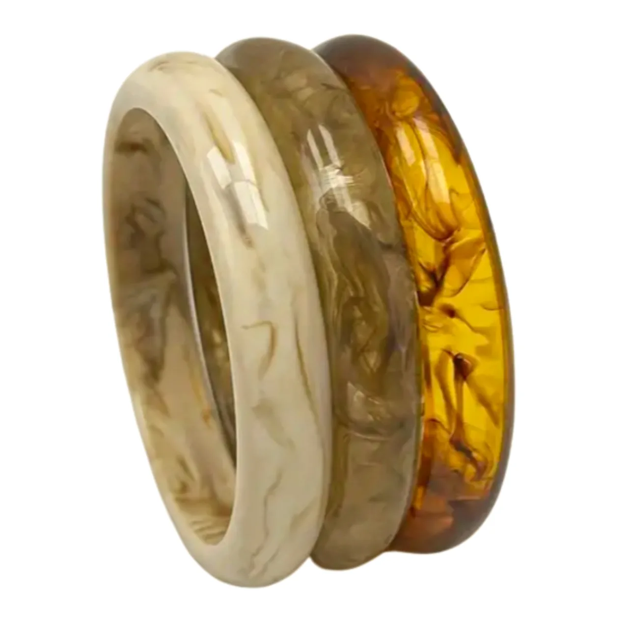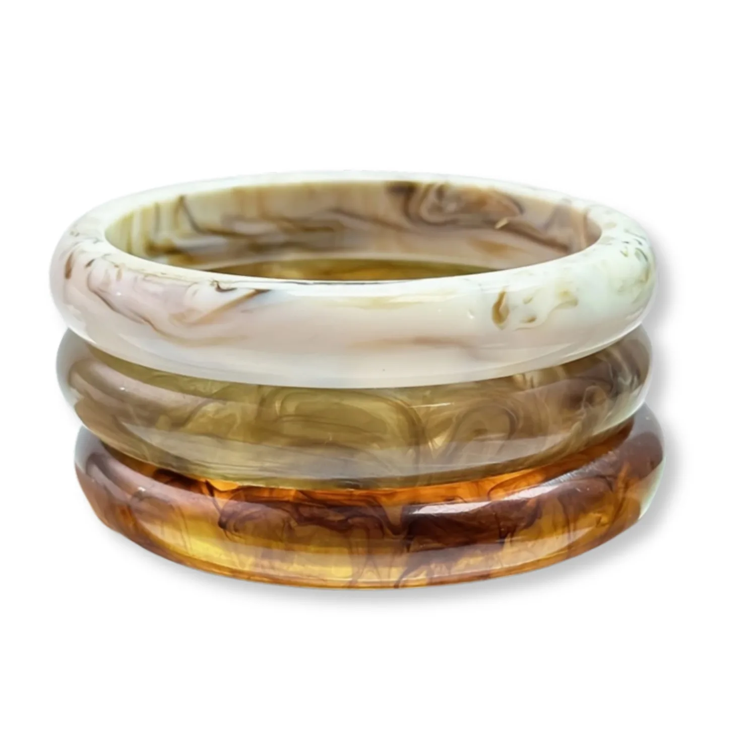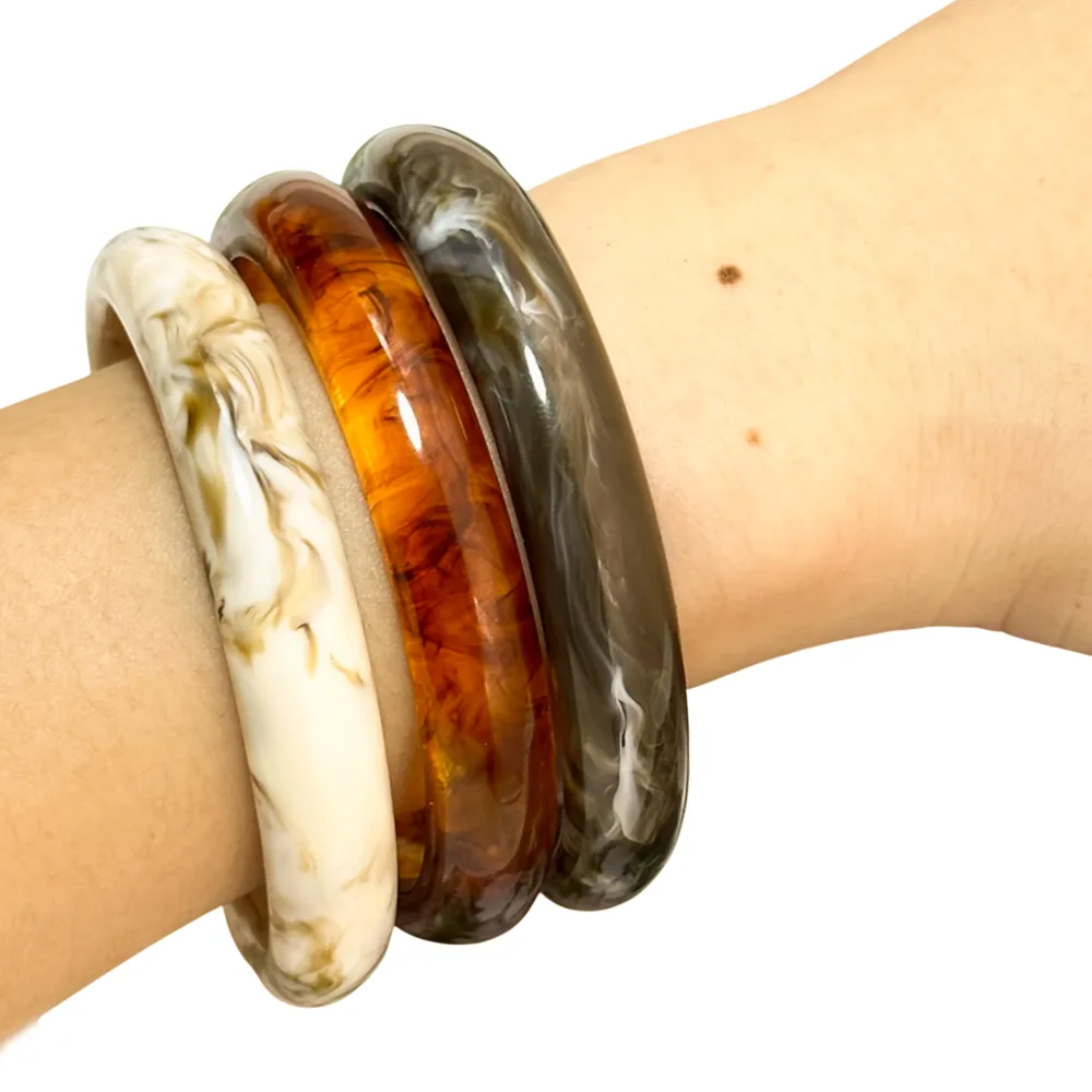 Bangle Set van 3 – Crème & Bruin met Marmer Effect